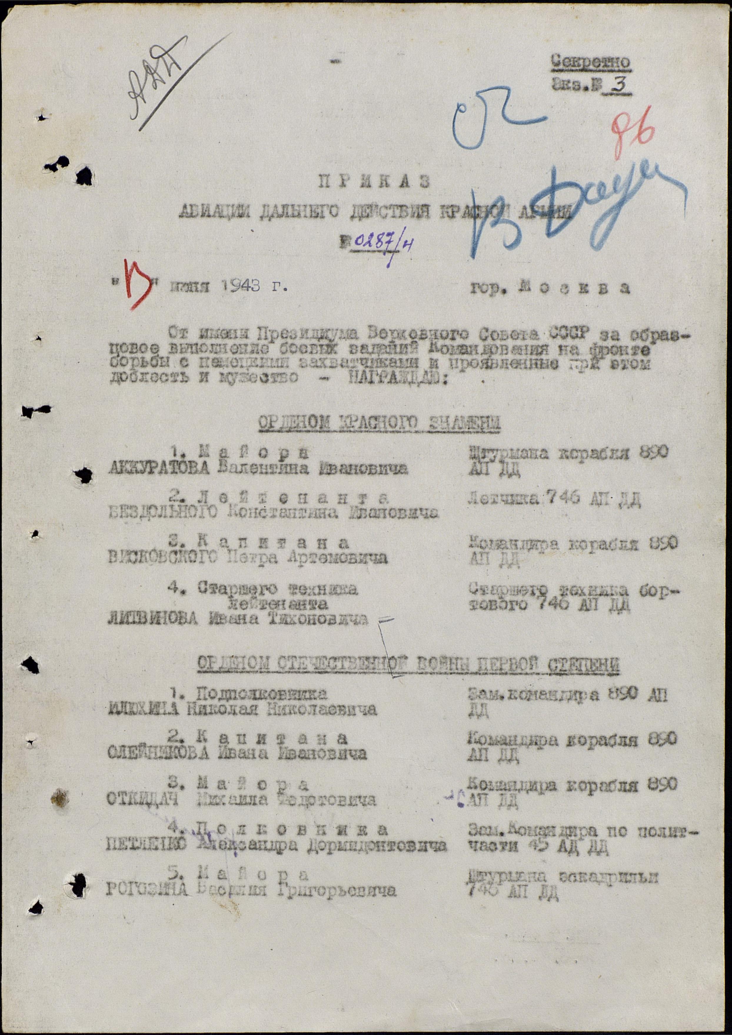Приказ № 287/н 13.06.1943 АДД КА