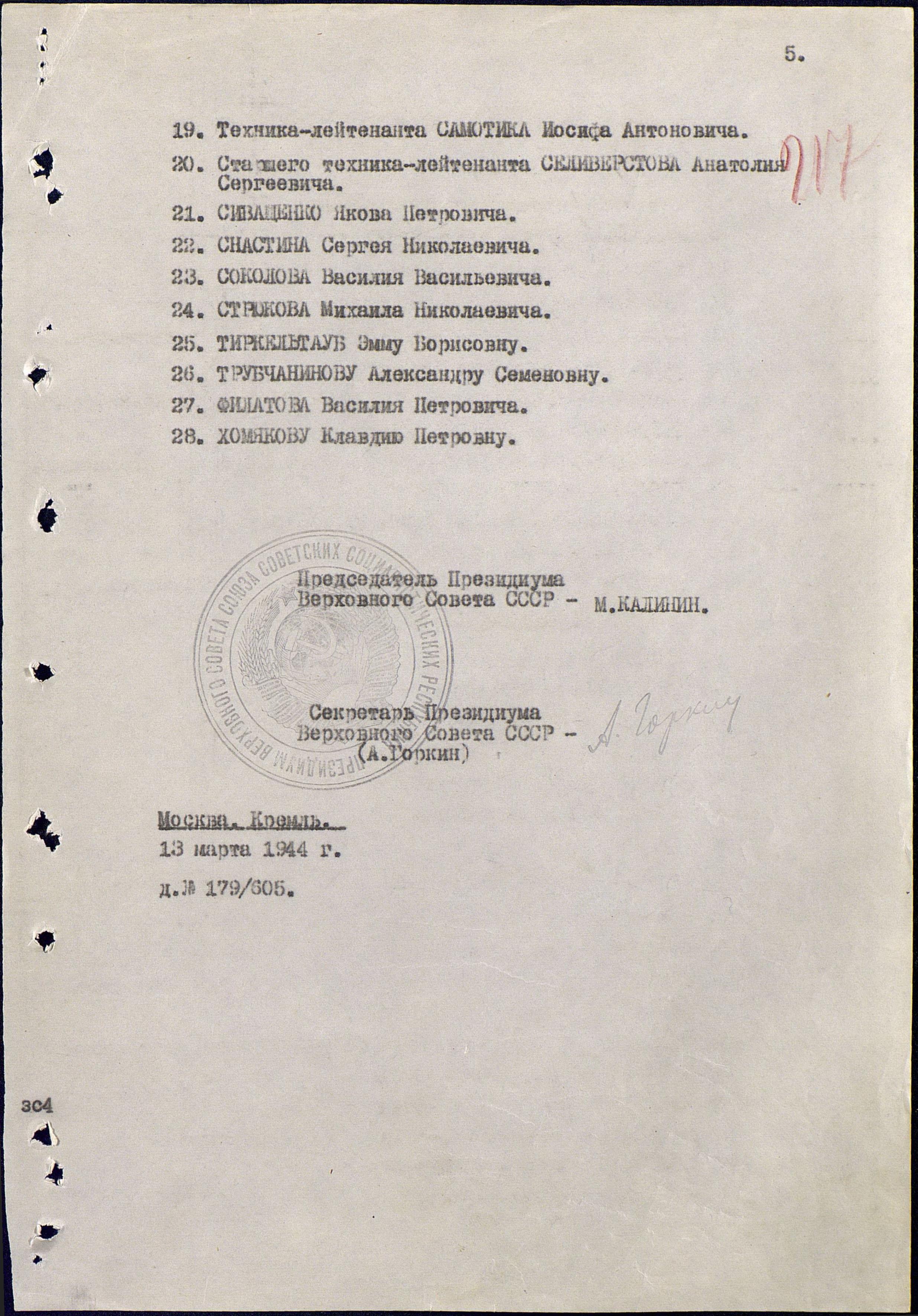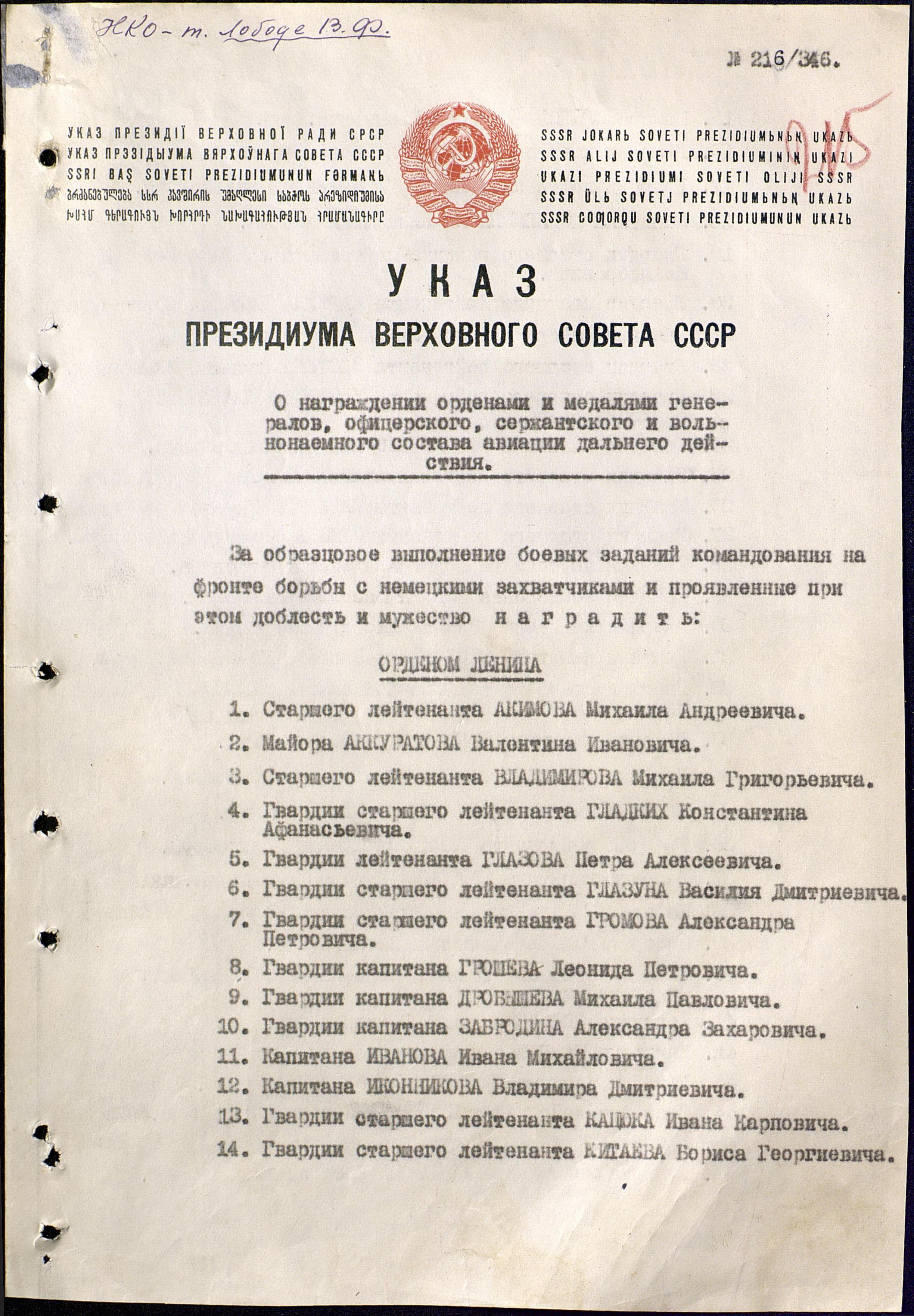 Указ Президиума ВС СССР № 216/346 13.03.1944