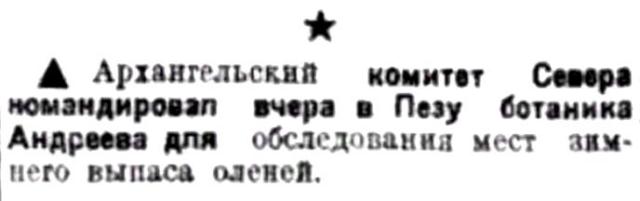 ♦ Архангельский комитет Севера командировал вчера в Пезу ботаника