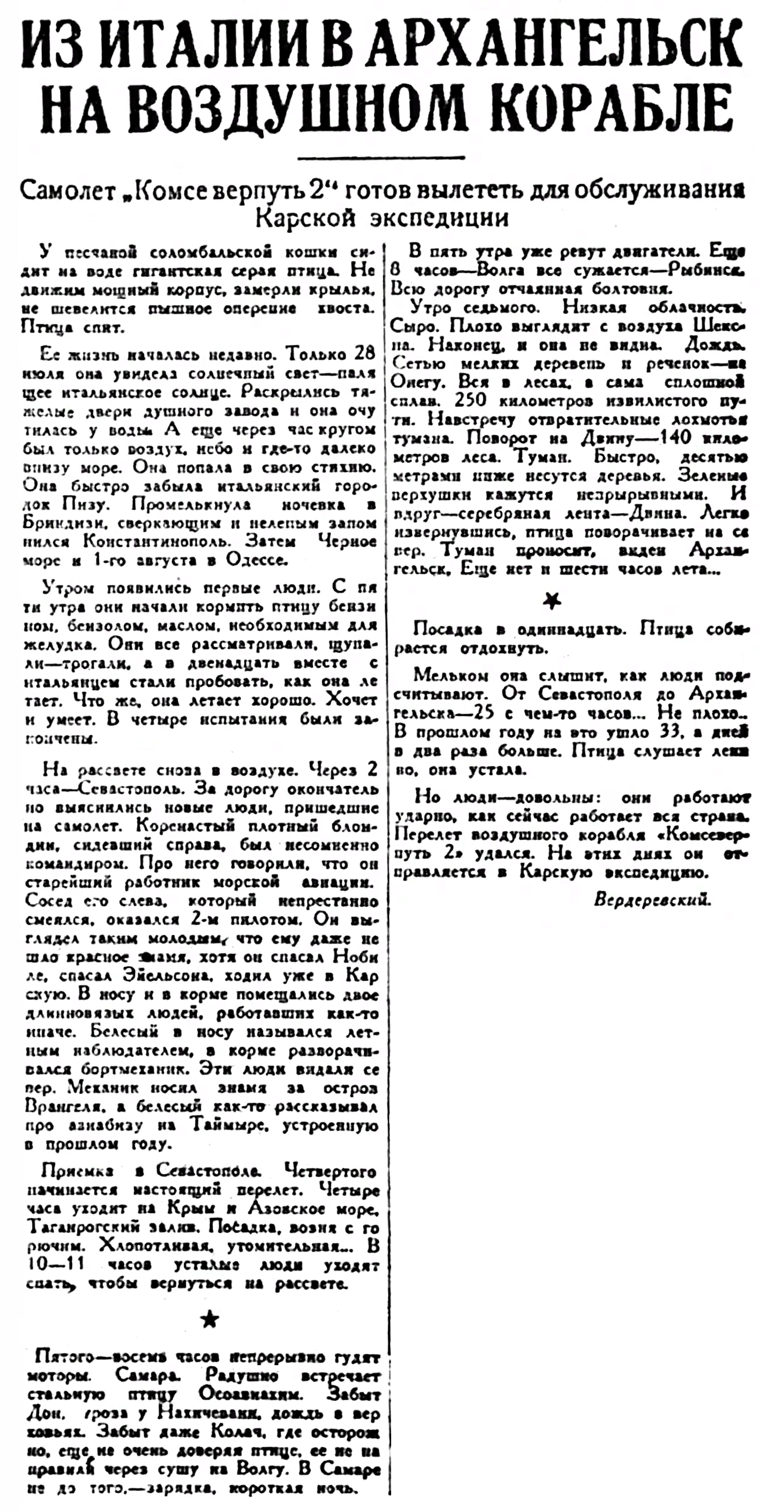 ИЗ ИТАЛИИ В АРХАНГЕЛЬСК НА ВОЗДУШНОМ КОРАБЛЕ