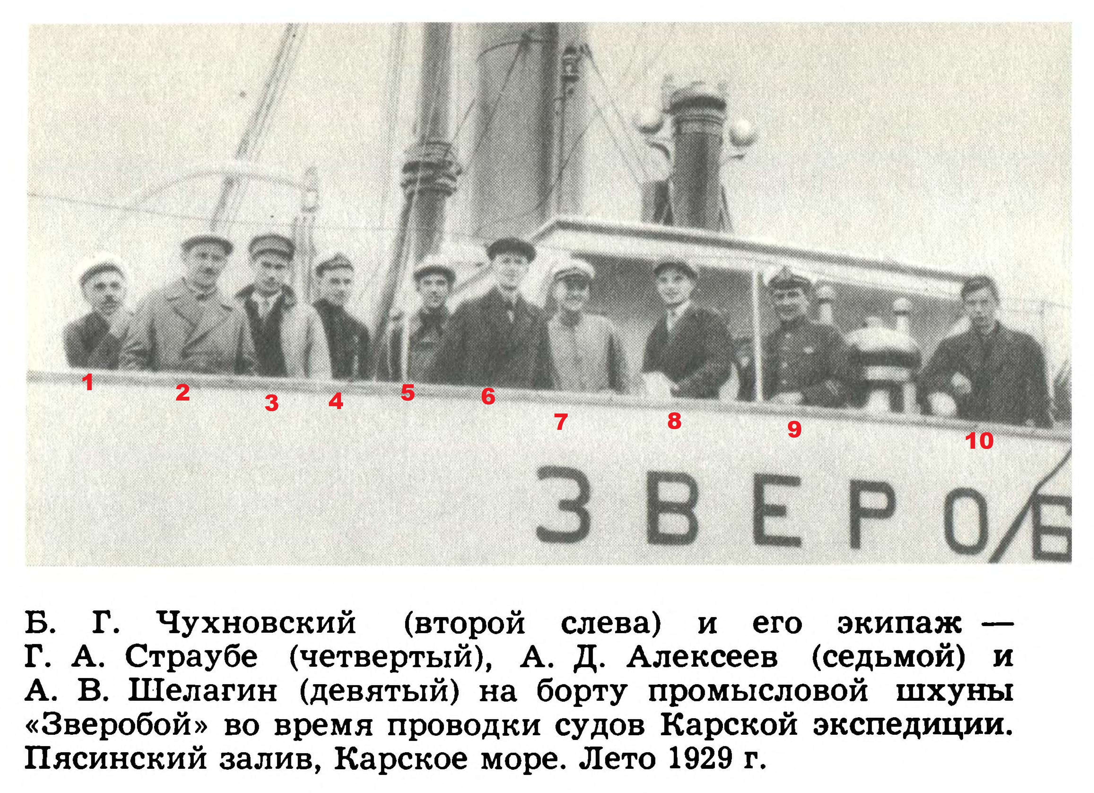 И четвертый, кого пока на этой фотографии мы знаем, тоже один из незаслуженно забытых пионеров полярной авиации - летчик В. В. Вердеревский. Он на фотографии - шестой слева.
