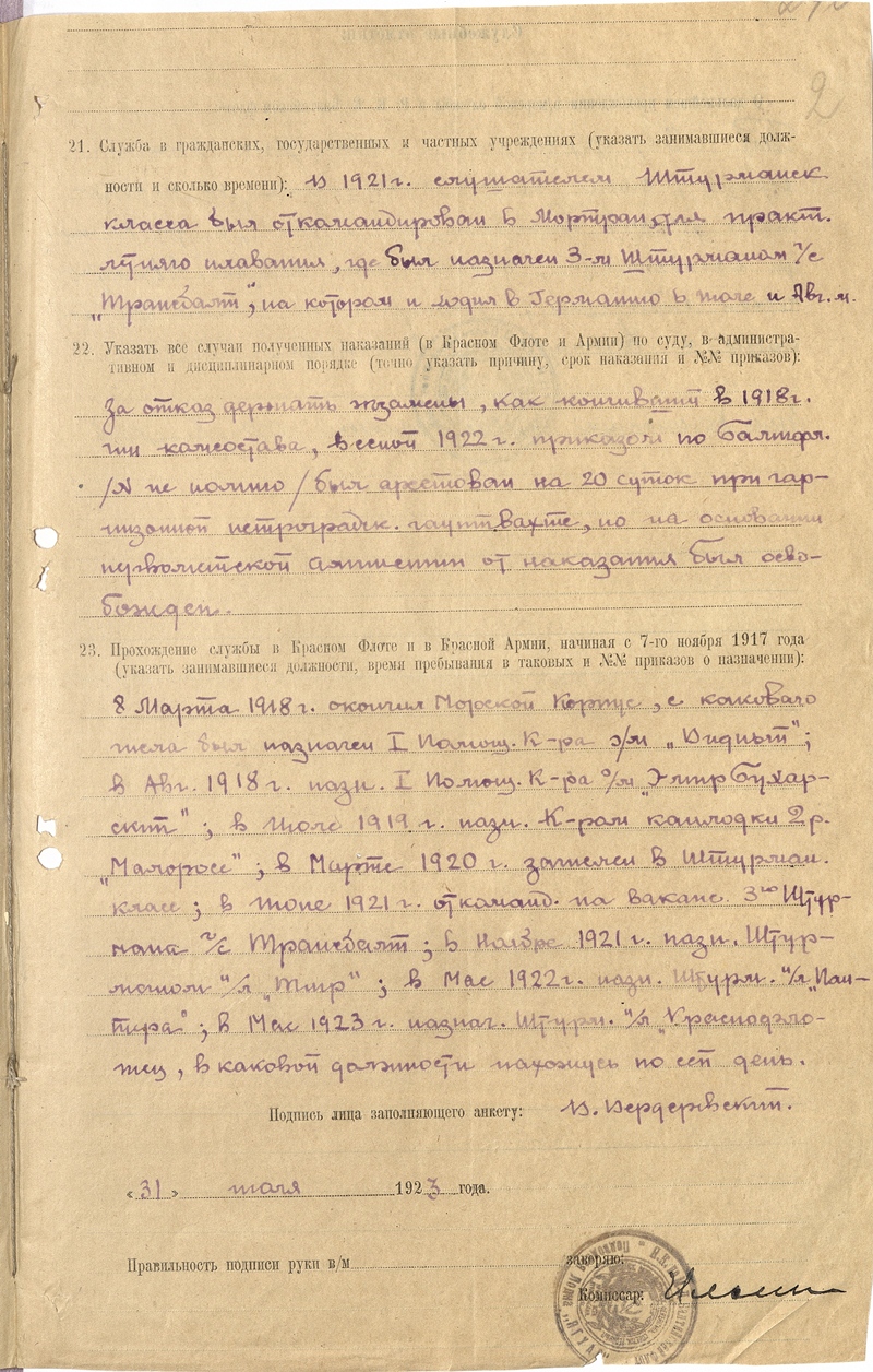 1922—23 гг. — Б. Ф. Штурман п. л. "Краснофлотец".