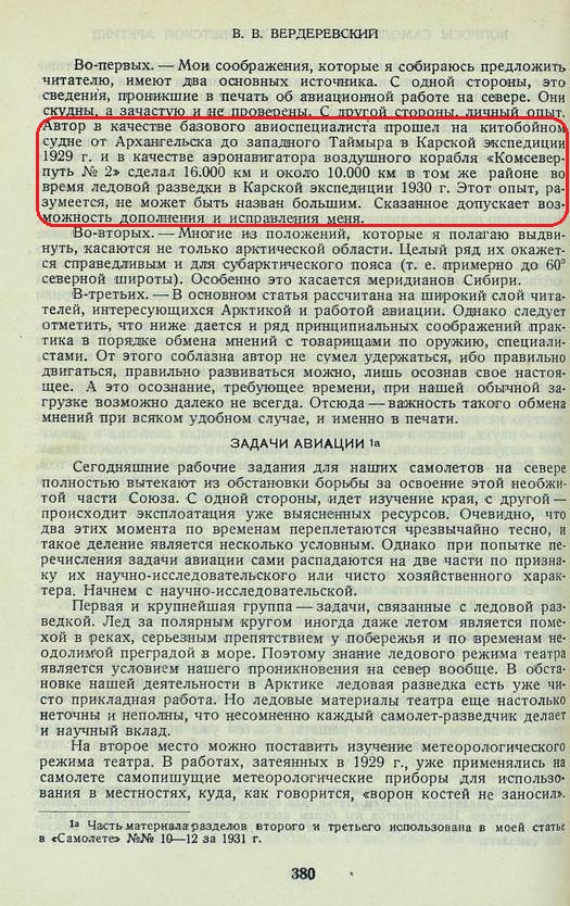 1932 г. - Упоминался в связи с участием самолетов в экспедиции л/п "Малыгин"