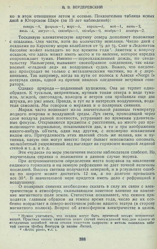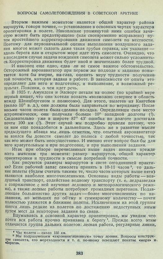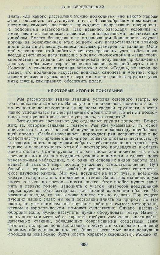 Таким образом мы видим на основе уже весьма краткого разбора, что тяжелые условия самолетовождения в Арктике могут быть зна­чительно облегчены усилиями науки и техники. Можно спорить о формах этой помощи, можно возражать против некоторых положе­ний автора, но является очевидной категорическая и срочная необхо­димость внимания к намеченным вопросам.