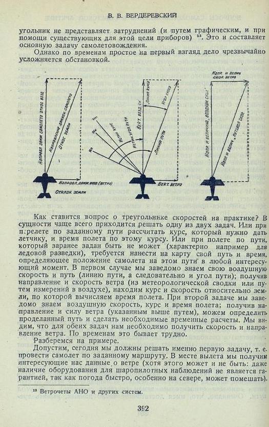 угольник не представляет затруднений (и путем графическим, и при помощи существующих для этой цели приборов) 13). Это и составляет основную задачу самолетовождения.