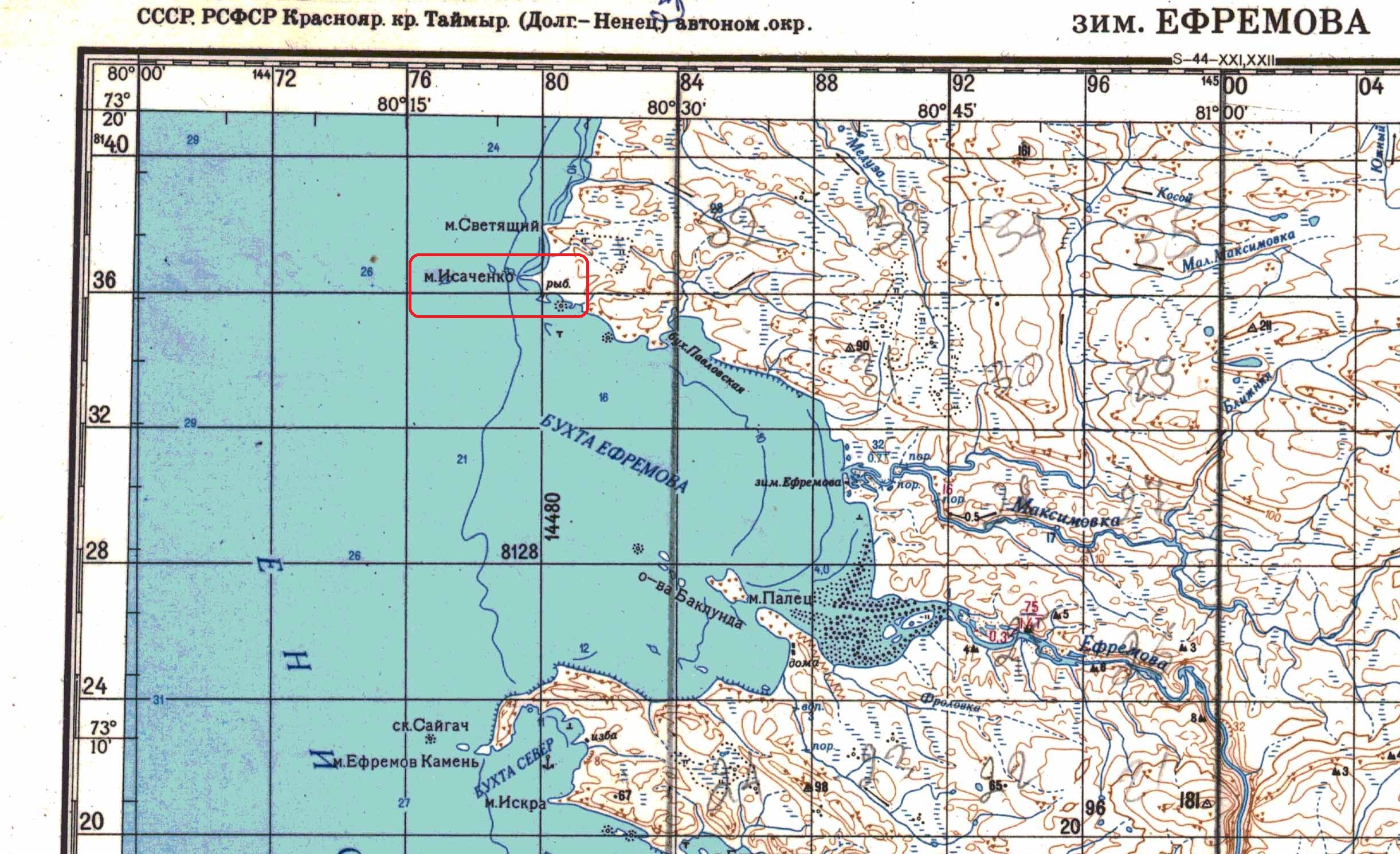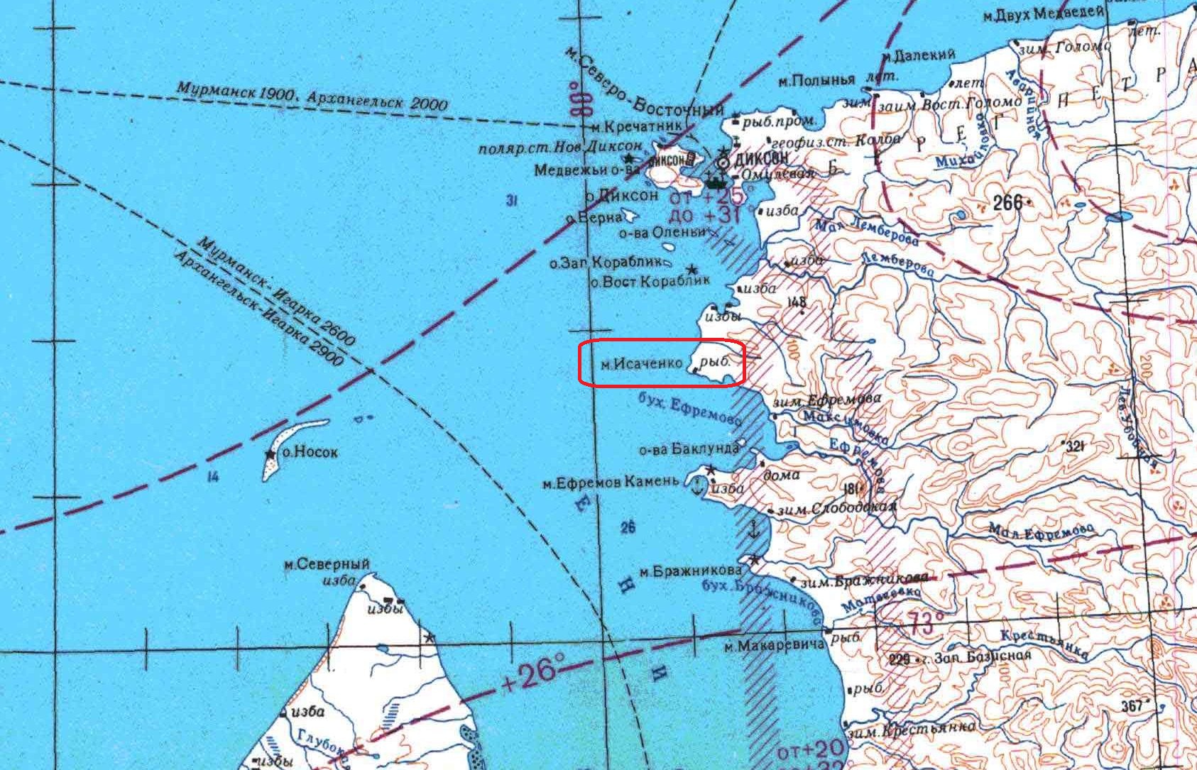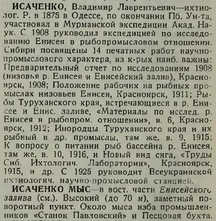 ИСАЧЕНКО МЫС — в вост. части Енисейского залива (см.). Высокий (до 70 м), заметный поворотный пункт. Около мыса изба промышленников "Станок Павловский" и Песцовая бухта.