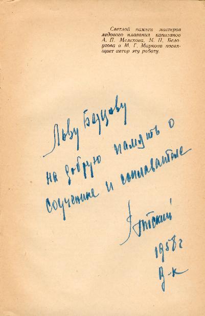 Автограф М.В. Готского на книге "Опыт ледового плавания":