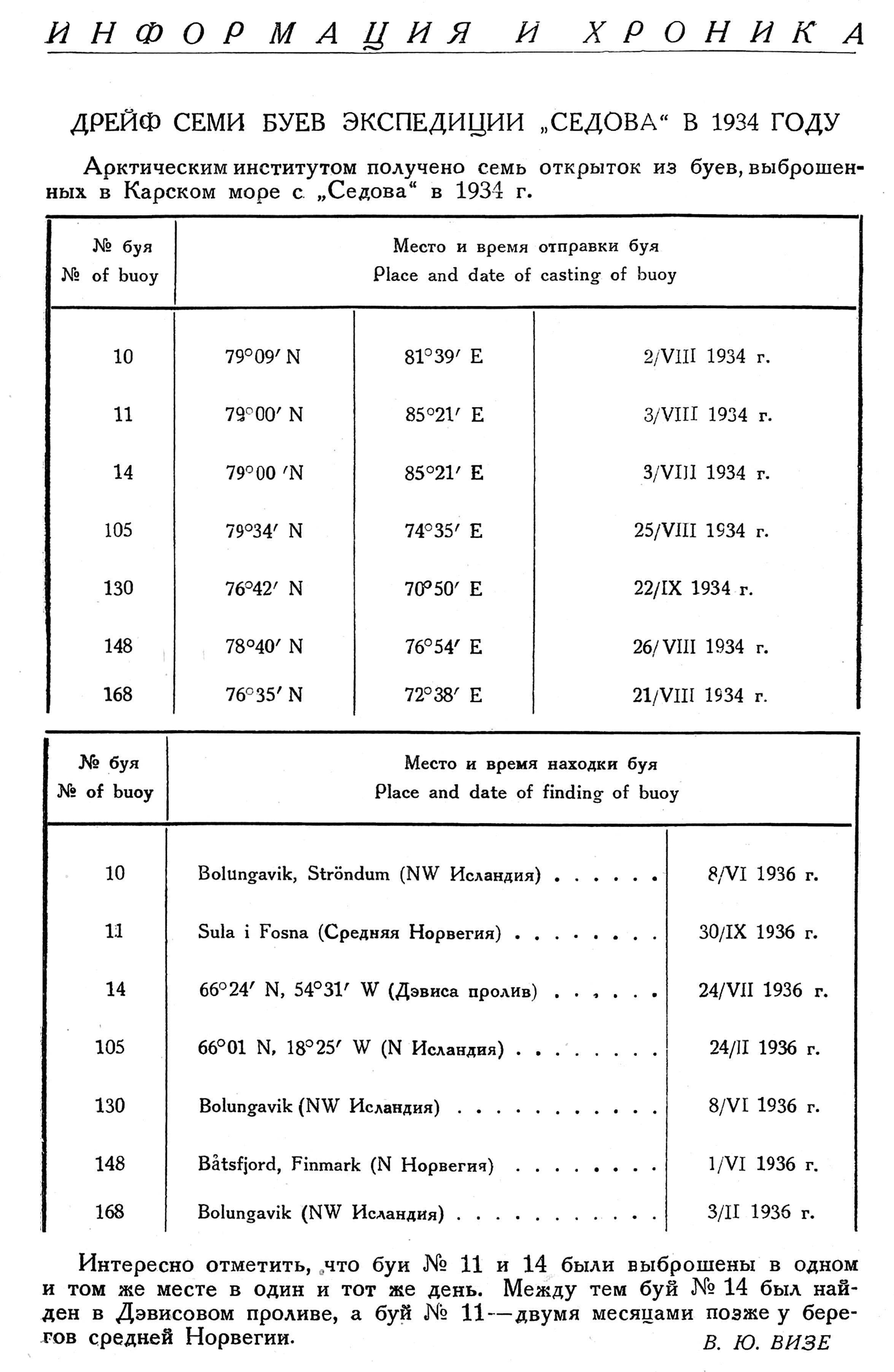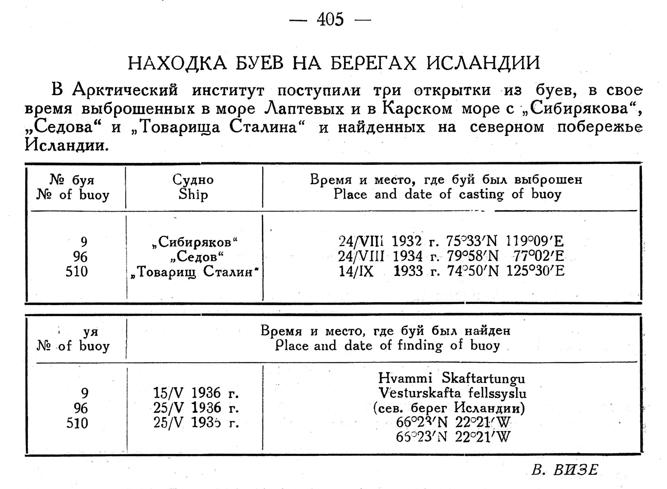 Директор метеорологической службы Исландии д-р Торкель Торкельсон сообщил нам, что зимою 1935/36 г. на северное побережье Исландии выбрасывало плавник в необыкновенно большом количестве. Это обстоятельство, равно как находка в Исландии большого количества буев, выброшенных в Карском море и море Лаптевых, указывает на активизацию полярного течения, несущего льды из сибирских морей в Гренландское море, и на усиленную разгрузку полярного бассейна от льдов.