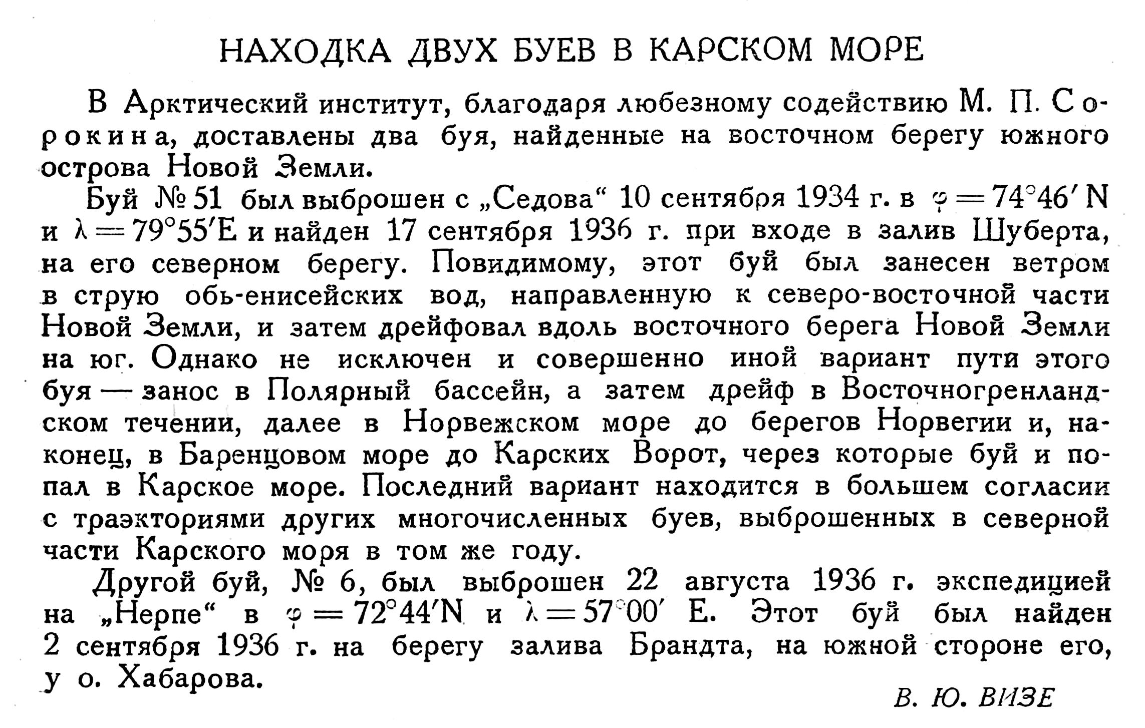 Директор метеорологической службы Исландии д-р Торкель Торкельсон сообщил нам, что зимою 1935/36 г. на северное побережье Исландии выбрасывало плавник в необыкновенно большом количестве. Это обстоятельство, равно как находка в Исландии большого количества буев, выброшенных в Карском море и море Лаптевых, указывает на активизацию полярного течения, несущего льды из сибирских морей в Гренландское море, и на усиленную разгрузку полярного бассейна от льдов.
