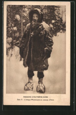 на открытке по-французски написано "Mort des peres Rouviere et Le Roux massacres par les Esquimaux en 1913", то есть примерно "Смерть священников Рувьера и Ле Ру, убитых эскимосами в 1913". (на обороте от руки написано по-немецки "Убийство миссионеров эскимосами. 1913")