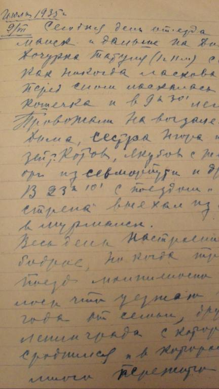 9/VII. Сегодня день отъезда [в Мур]манск и дальше на Ди[ксон]...