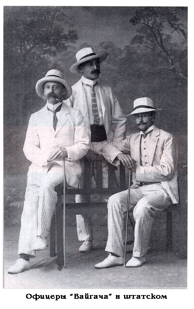Гидрографическая экспедиция Северного Ледовитого океана состоит из двух транспортов – ледоколов "Таймыр" и "Вайгач", по 1500 тонн водоизмещении: Команду каждого корабля составляют семь офицеров, врач и 39 матросов военного флота. Транспорты построены специально для плавания в Ледовитом океане и, насколько возможно, приспособлены для борьбы со льдами. Они снабжены разборными санями для пешеходных экскурсий, лыжами и теплым платьем, принимают большие запасы угля, дающие возможность пройти при спокойном море 12000 миль, берут консервов на 16 месяцев на случай неожиданной зимовки, и имеют кое-какое специальное снаряжение, которое возможно взять при ограниченности места и необходимости предусмотреть всякие случайности.