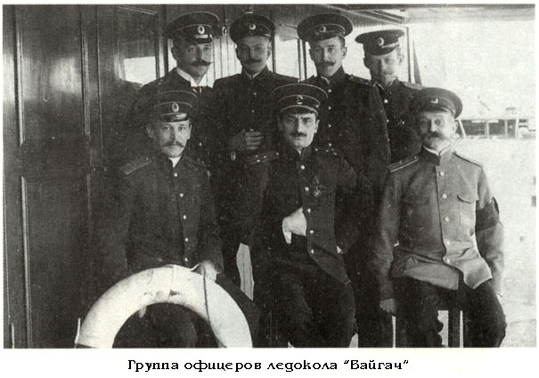 Через несколько времени он получил телеграмму "Вайгача", затем увидел за горизонтом его типичные мачты и наконец и весь контур транспорта, который держал свои позывные. В седьмом часу вечера оба стали на якорь в бухте у западного берега острова Преображения.