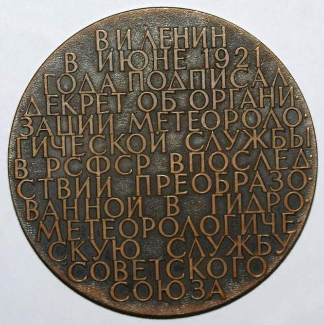 Дизель-электроход "Обь" награжден памятной медалью Главного Управления Гидрометеорологической службы при Совете Министров СССР, посвященной "50 - летию Советской Гидрометеорологической службы"