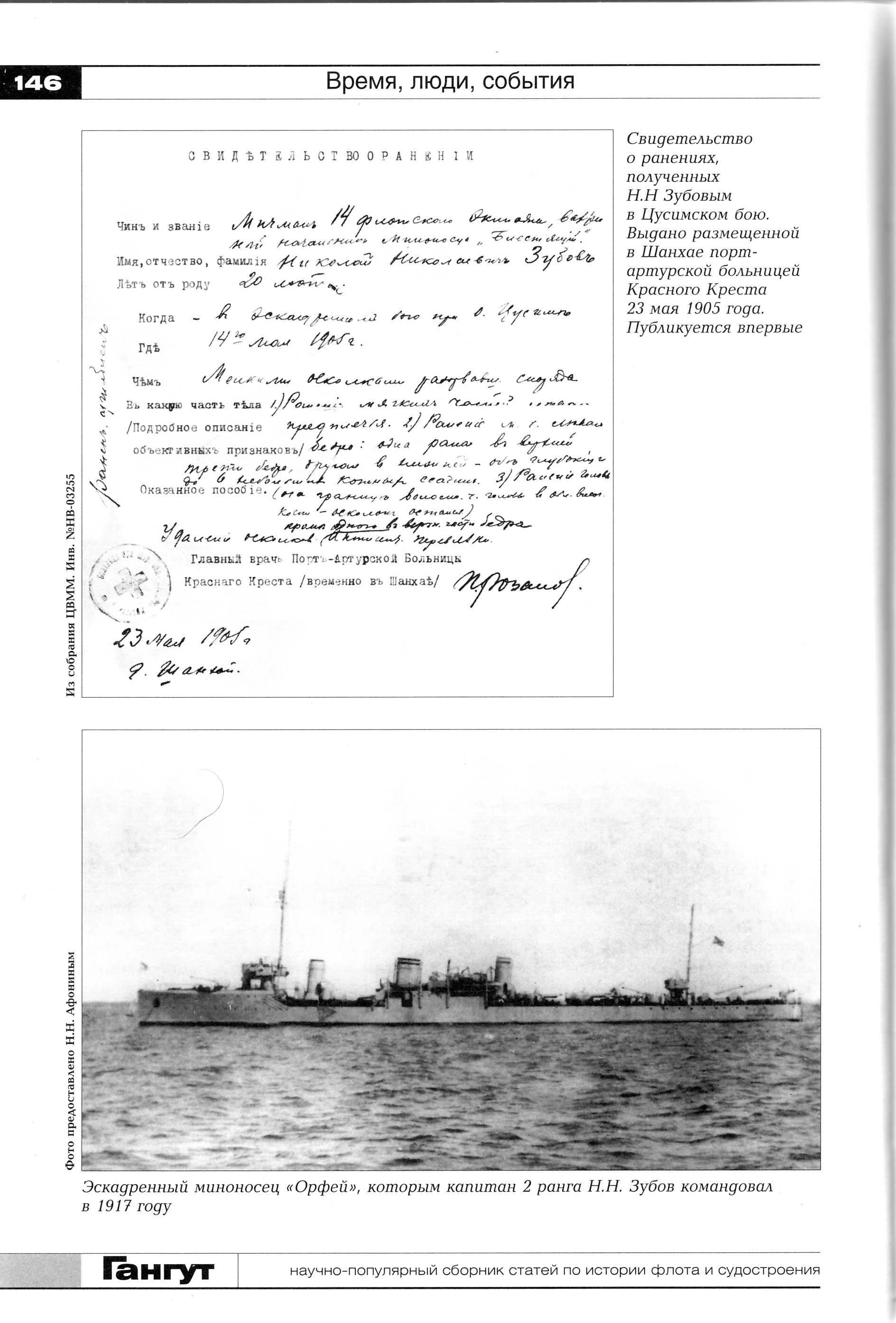 А служба оставалась службой. Шли годы восстановления и реорганизации флота, вступала в силу новая судостроительная программа, была утверждена новая классификация военных кораблей. Одно за другим следуют многочисленные перемещения по службе. Судя по записям в послужном списке, лейтенант Зубов ревностно относился к службе. <В службе сего офицера не было обстоятельств, лишающих права на получение знака отличия беспорочной или отдаляющих срок выслуги к этому знаку>. В декабре 1912 г. Н. Н. Зубову присваивают очередное звание - старшего лейтенанта.