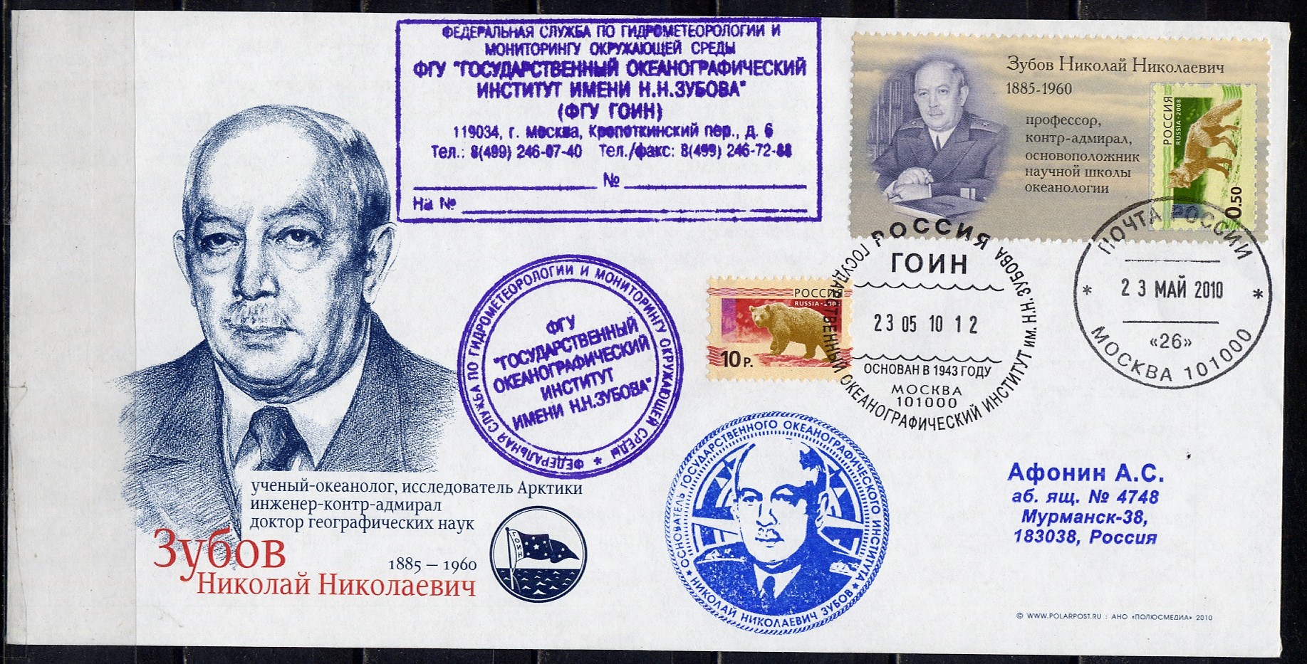 В соответствии с обращением Ученого совета Государственного учреждения "Государственный океанографический институт", ходатайствами ряда научных организаций, поддержанными Департаментом науки и промышленной политики города Москвы, о присвоении институту имени Николая Николаевича Зубова, первого директора института, доктора географических наук, контр-адмирала, заслуженного деятеля науки и техники РСФСР, с целью увековечения его памяти: