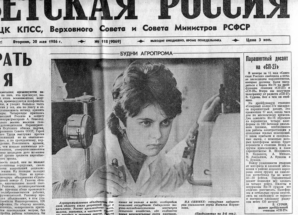 Во время тренировок перед грудным сезоном 86-го года наш корреспондент встретился с участниками экспедиции «Экспарк-86» и попросил вспомнить май 1984 года, когда — впервые в истории освоения Севера — парашютный отряд приледнился на месте будущей дрейфующей станции «Северный полюс-27».