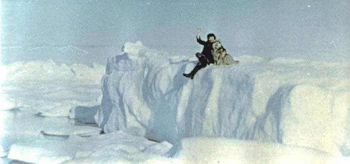 На фоне белого безмолвия раскрылись оранжево-белые парашюты. Вскоре четырнадцать человек стояли на льдине, а в небе светились четырнадцать звездочек: каждый выпустил ввысь зеленую ракету — живы, невредимы.