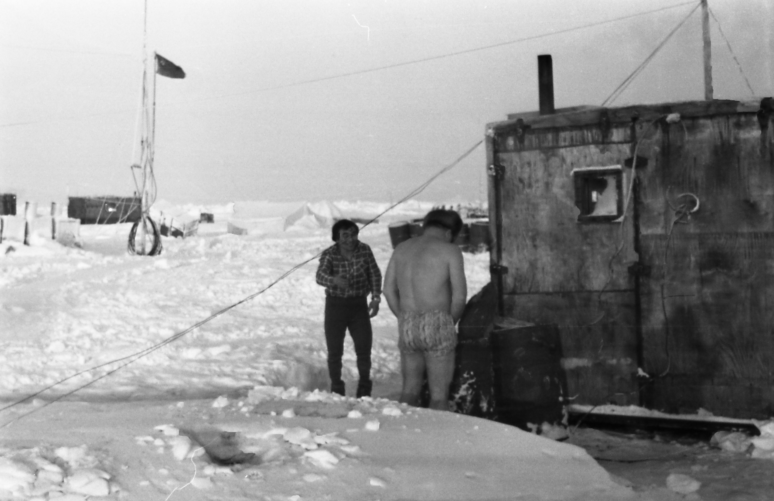 Станция заселена 22 марта 1983 г. 77°21' с.ш.; 179°15' з.д., толщина льдины 250-350 см.