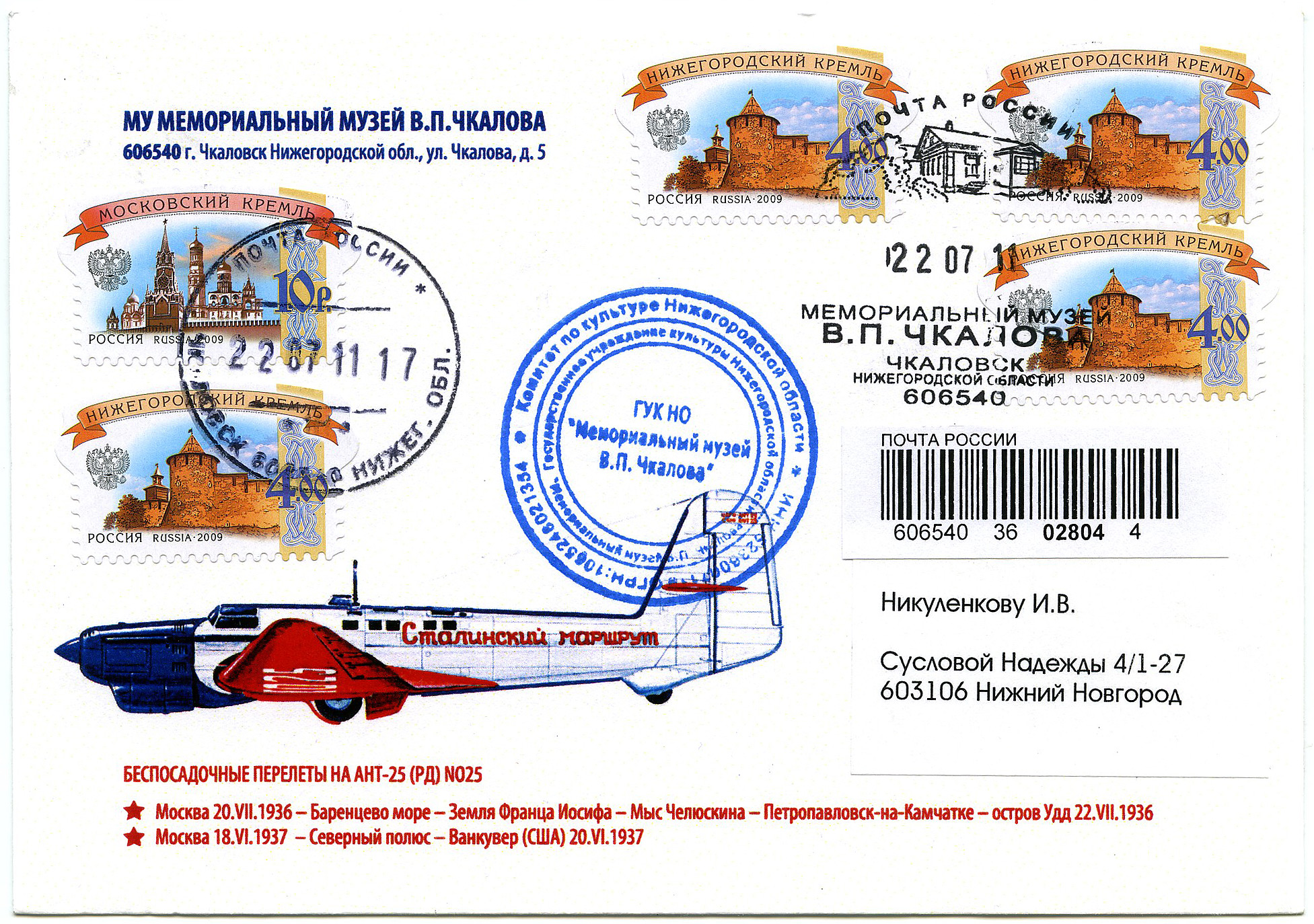 Директор музея В.П. Чкалова оказал содействие, а штемпель благополучно нашелся на почте свежеприсланным.