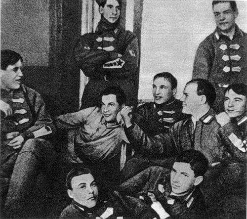 В. Чкалов среди товарищей в Борисоглебской школе военных летчиков