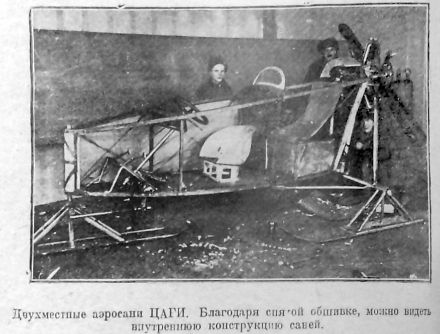 Занявшись специально вопросом об аэросанях, ЦАГИ выпустил целый ряд высоких по качествам моделей, построенных целиком из кольчугалюминия, вырабатываемого трестом Госпромцветмет.