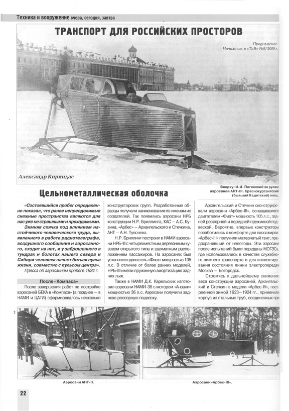 аэросанный пробег 1924 г. два слова про АНТ-lV