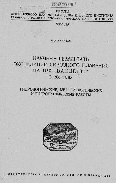 Рейс "Ванцетти" и "Искры", разрешивших чисто транспортнохозяйственную задачу, был использован также и для попутного изучения Северного морского пути. Из-за недостатка места на судах, совершенно не приспособленных для экспедиционных научных работ, Арктическим институтом в эту экспедицию были командированы всего 2 сотрудника: гидролог Я. Я. Гаккель и физик Л. С. Боришанский.