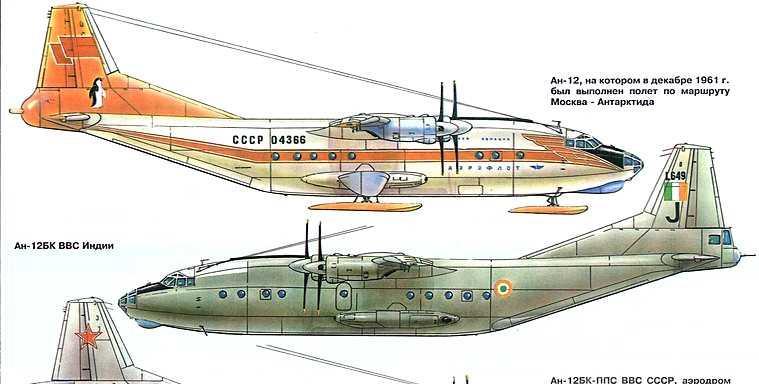 Ан-12 СССР-04366 совершил перелет в Антарктиду, совершив посадку на ледовый аэродром на колесное шасси. Там были установлены лыжи, с которыми машина выполнила ряд полетов. Причины отказа от массового использования Ан-12 и Ил-18 в Антарктиде крылись не только в недостатках шасси тяжелых самолетов, но и в скудности средств – освоение континента с военными или хозяйственными целями было невозможно по международным договорам о его статусе, а на науку давали не особенно много. Ан-2, Ли-2 и Ил-14, а затем легкие вертолеты оказались дешевле в эксплуатации, что и решило вопрос».