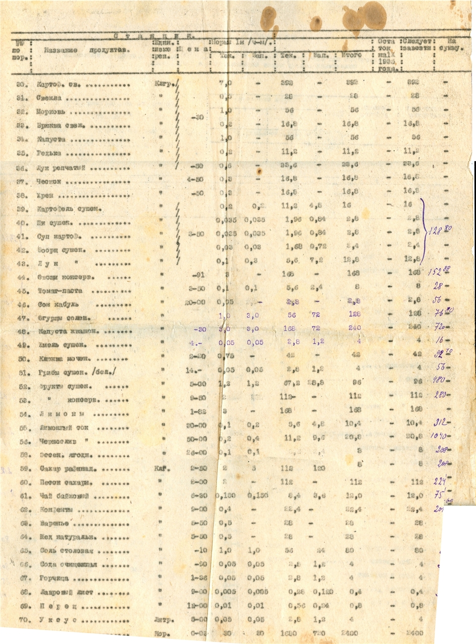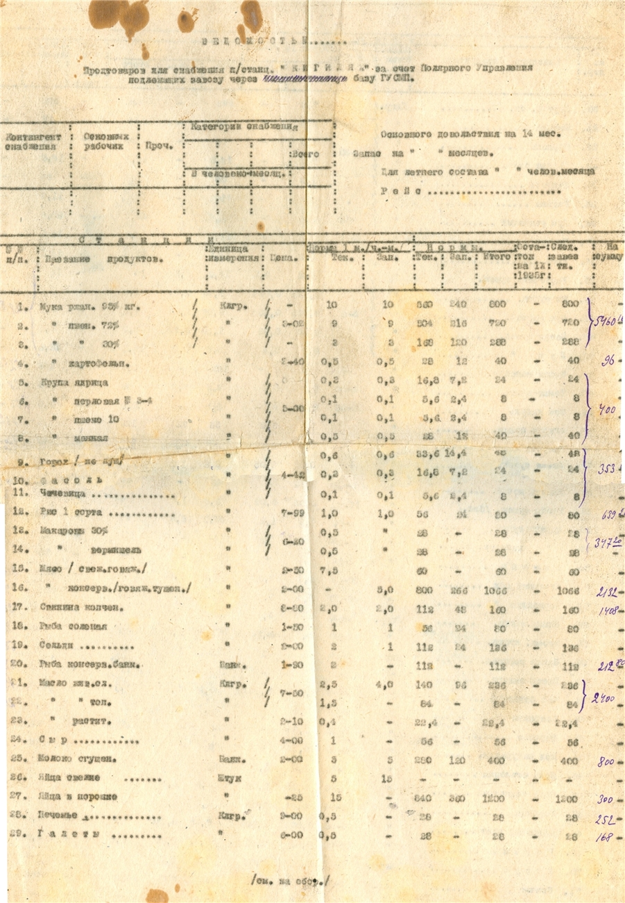 Вместе с серией постов о п/ст "Мыс Шалаурова": Ведомость продснабжения п/ст "Кигилях".