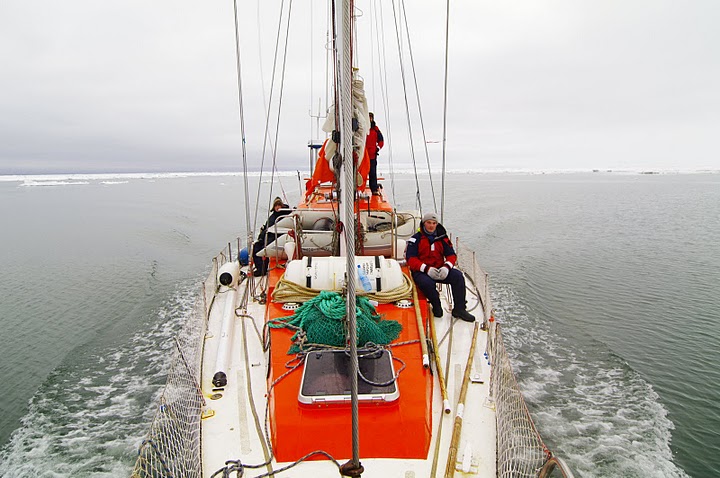 Заметка капитана 15-09Первые сутки после Исландии пролетели при свежих попутных ветрах. Западный ветер 10-15м\с, волна до 5 м. Снова порвали третью геную. Нет наверно смысла уже отдавать в ремонт наши видавшие виды носовые паруса – это пустая трата денег. Решили, что если снова что-то порвем, то будем ремонтировать сами. Никогда больше не пойду в дальний поход на старых тряпках.