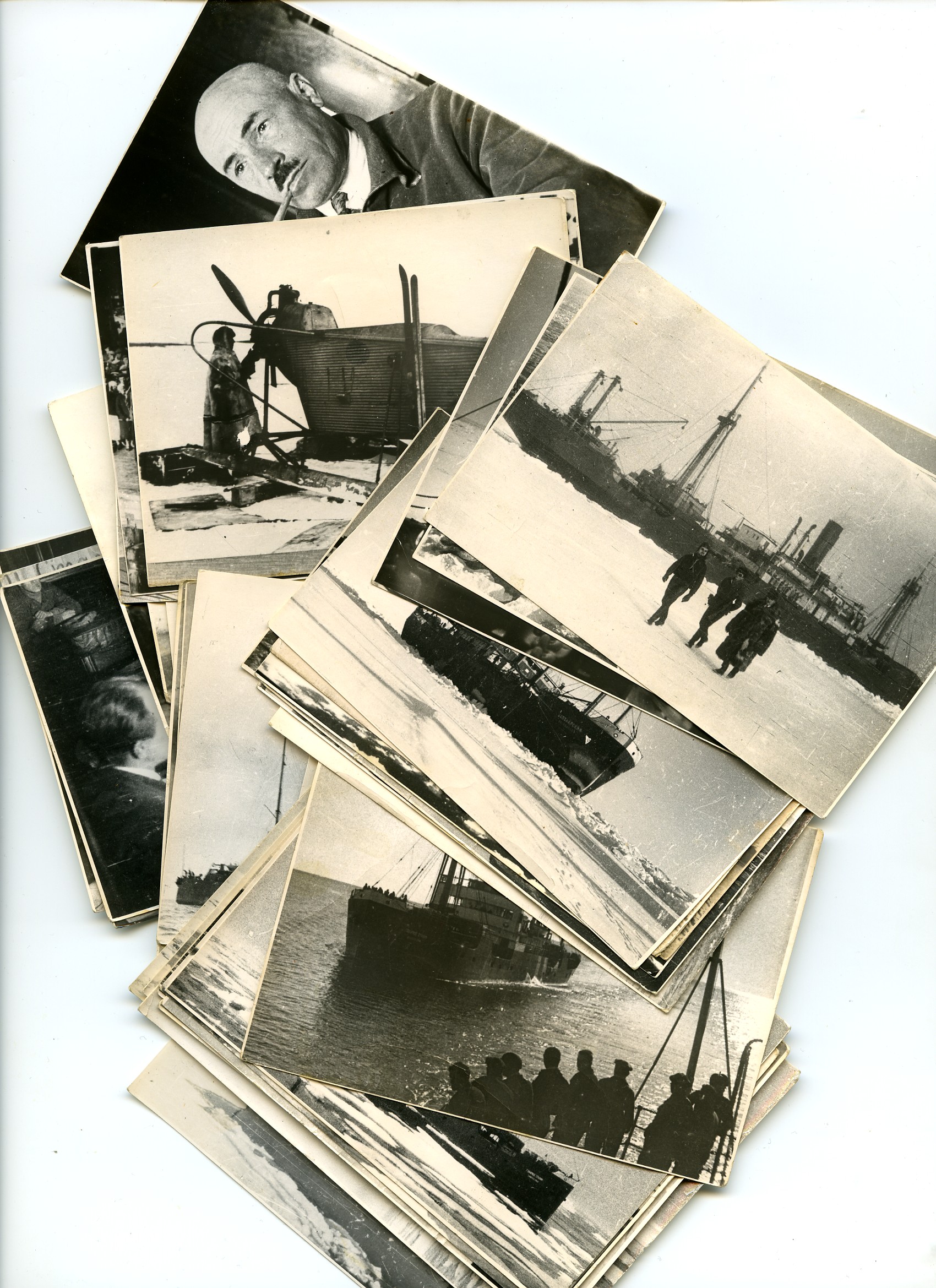 беглый просмотр дал следующее: фотографии сделаны кем-то на "Красине". Есть снимки навигации 33 года, Первой Ленской транспортной экспедиции - проводка "Красиным" под руководством Б.В. Лаврова грузовых пароходов (на снимках "Товарищ Сталин", "Володарский", "Правда", "Русанов" и еще какие-то, штаб экспедиции, хороший снимок самого Лаврова), а также фотографии Ушакова, встреча "высокоширотной экспедиции т. Ушакова", проведение работ с борта ледокола и что то еще по мелочи.