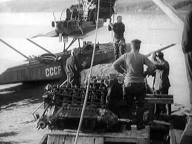 В навигацию 1932 года - экспедиция под руководством С. Обручева. Командир самолета (штурман) Л. Петров, пилот - Г. Страубе, бортмеханик Крутский.