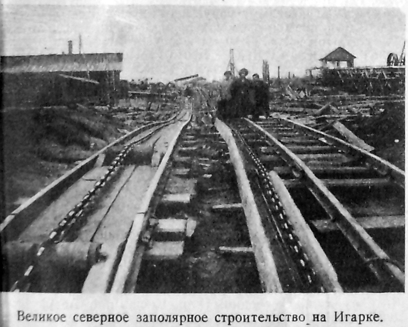 «Географический пункт» Игарка, расположенный среди незаселенных, диких и холодных тундр, представляет собою сейчас с ее заводами, тракторами, вытягивающими лес из реки, бесчисленными штабелями прекрасных золотистого цвета лесоматериалов, со всей необычайной здесь, за Полярным кругом, механизацией, незабываемое радостное, потрясающее впечатление. Было бы дико где либо в другой стране, вне нашего социалистического хозяйства, встретить в Арктике - прежней зоне владычества беззастенчивых и наглых эксплоататоров беззащитных малых народностей — такой индустриальный центр. Большие климатические препятствия, что встали при освоении этого уголка Союза, надо считать при дальнейшем проведении культурных начинаний подчиненными воле человека. Большое будущее ожидает Игарку в области развития лесоэкспортных операций, ибо благодаря постоянным теплым ветрам, дующим в летнее время, лесоматериалы, расположенные на большой территории биржи, просыхают в очень короткий срок. Таким образом, естественно неблагоприятные особенности климата Севера в части влияния на лесоэкспорт нельзя относить к источнику, при котором бы лесопродукция получала синеву — знак брака и невозможности ее отправки за границу.
