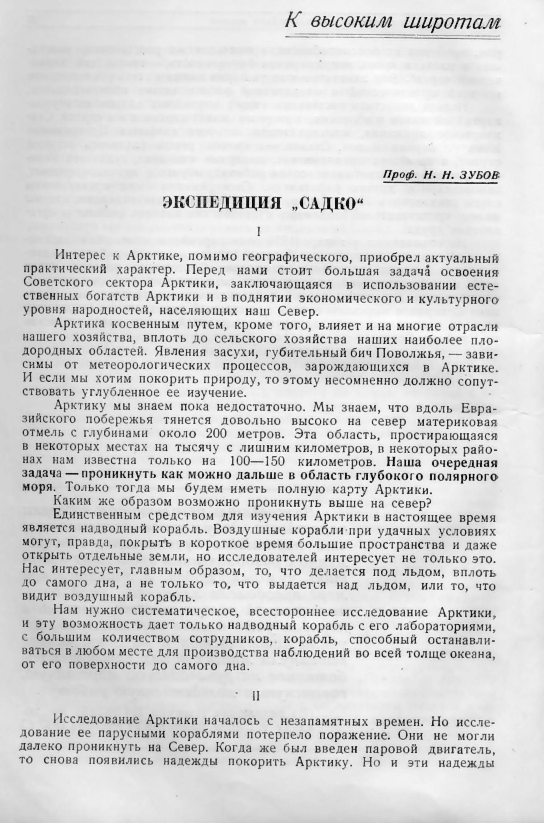 Нашел в "Советской Арктике" (1936 г., №1) статью Н.Н. Зубова о 1-й высокоширотной экспедиции на "Садко". Решил отсканировать ее полностью, поскольку кроме собственно об экспедиции, в ней немало любопытных взглядов на организацию исследований Арктического бассейна, потепление Арктики, "Землю Джиллиса" и т.п.