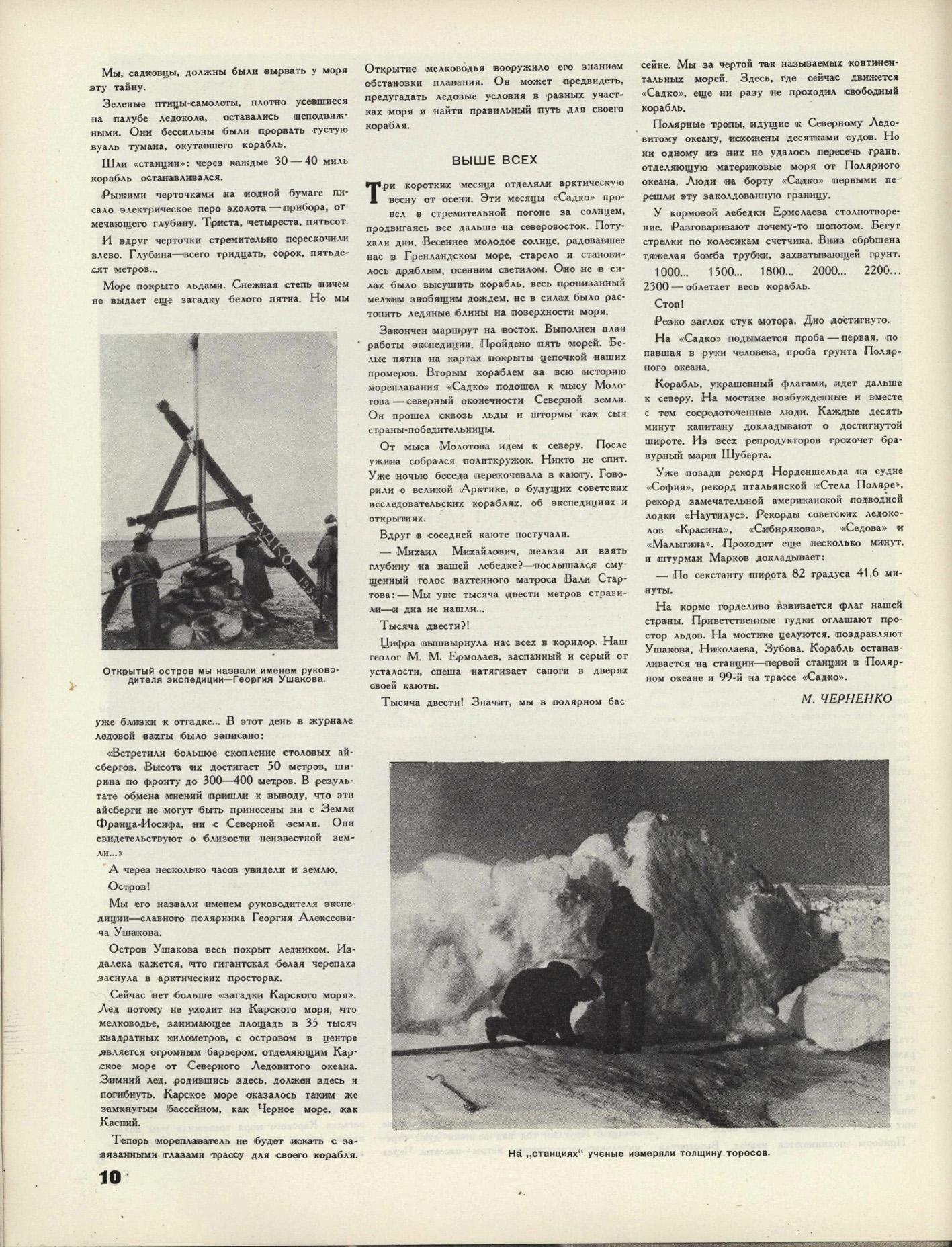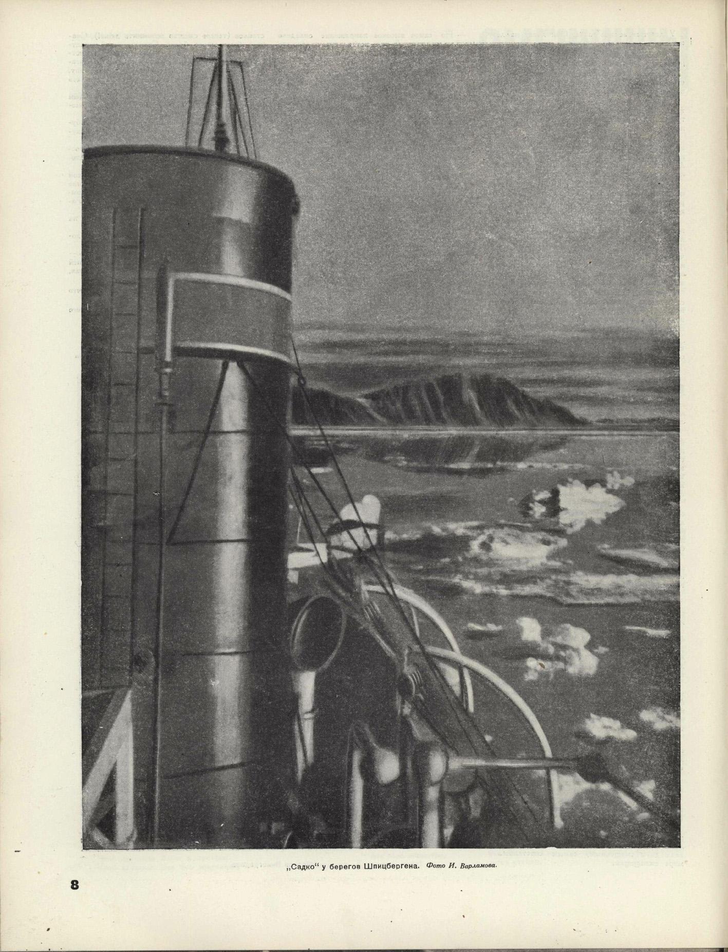 Первая советская высокоширотная экспедиция на ледокольном пароходе „Садко” под командованием капитана Николая Михайловича Николаева стартовала из Архангельска 8 июля 1935 г. Перед ее участниками была поставлена задача провести исследования в Гренландском море, обследовать „белые пятна” к северу от Шпицбергена, Земли Франца-Иосифа и в северной части Карского моря, а также обеспечить сводками погоды перелет летчика Сигизмунда Леваневского на самолете Ант-25 через Северный полюс в Америку, запланированный на лето 1935 г. (Как известно, по техническим причинам, этот перелет был прерван.) Для проведения научных наблюдений „Садко” был оснащен самыми современными приборами, на его борту было оборудовано пять научно-исследовательских лабораторий.