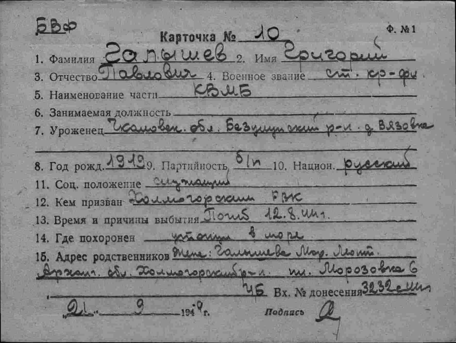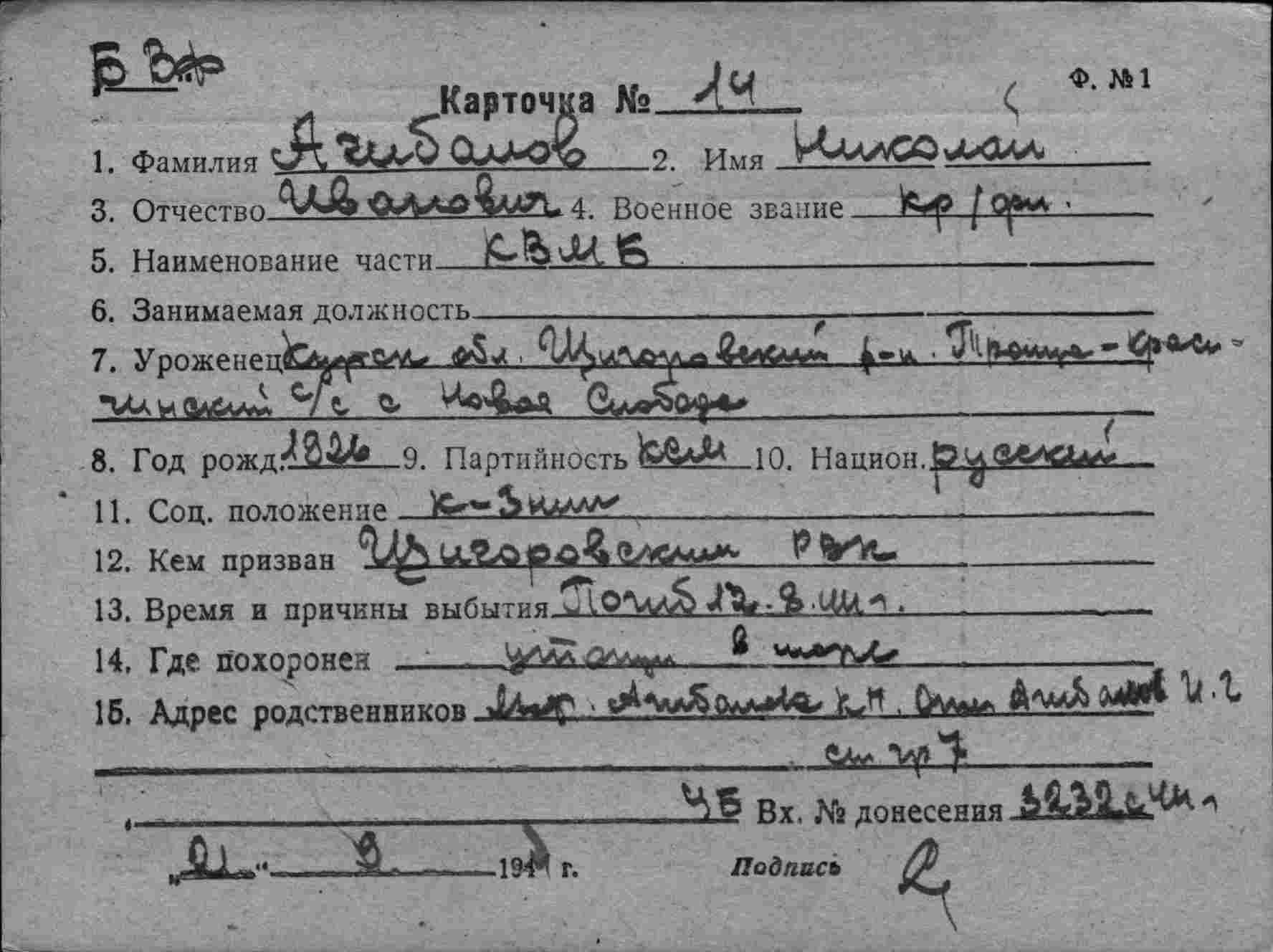 данные из Картотеки безвозвратных потерь ОБД "Мемориал".