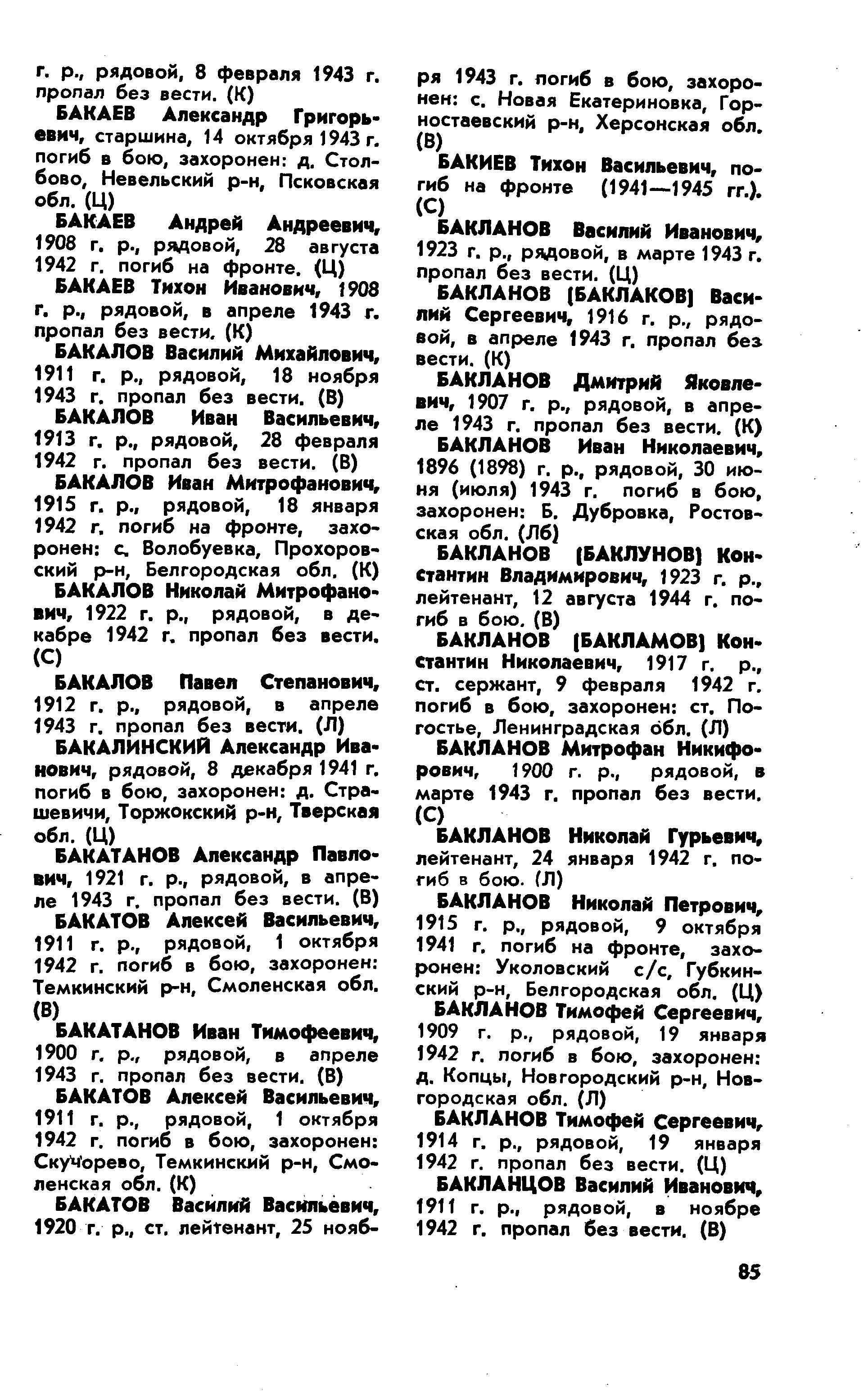 35. Баклунов Константин Владимирович, пассажир транспорта «Марина Раскова», воинское звание – лейтенант; должность, специальность, часть – начальник участка СНиС (отд. связи), командир группы, КВМБ; дата рождения – 26.05.1923 г.; партийность и № комсомольского билета – член ВЛКСМ с 1940 г., № 11226344; место рождения – г. Воронеж; социальное положение – учащийся (рабочий); национальность – русский; срок службы (начсостав) – 15.07.1941 г.; награды, ордена, медали – медаль «За оборону Севастополя» (удостоверение № 26526); каким РВК призван – Воронежским РВК (кадровый); по какой причине, где и когда выбыл – погиб в Карском море 12.08.1944 г.; семейное положение – холост; родственники (ФИО, адрес) – отец, Баклунов Владимир Васильевич, мать, Баклунова, г. Воронеж, ул. Средне-Смоленская, д. 11 (1), кв. 1 (3 – только с номером дома 11). Среди вещей было обнаружено свидетельство об окончании училища АКСМУ.
