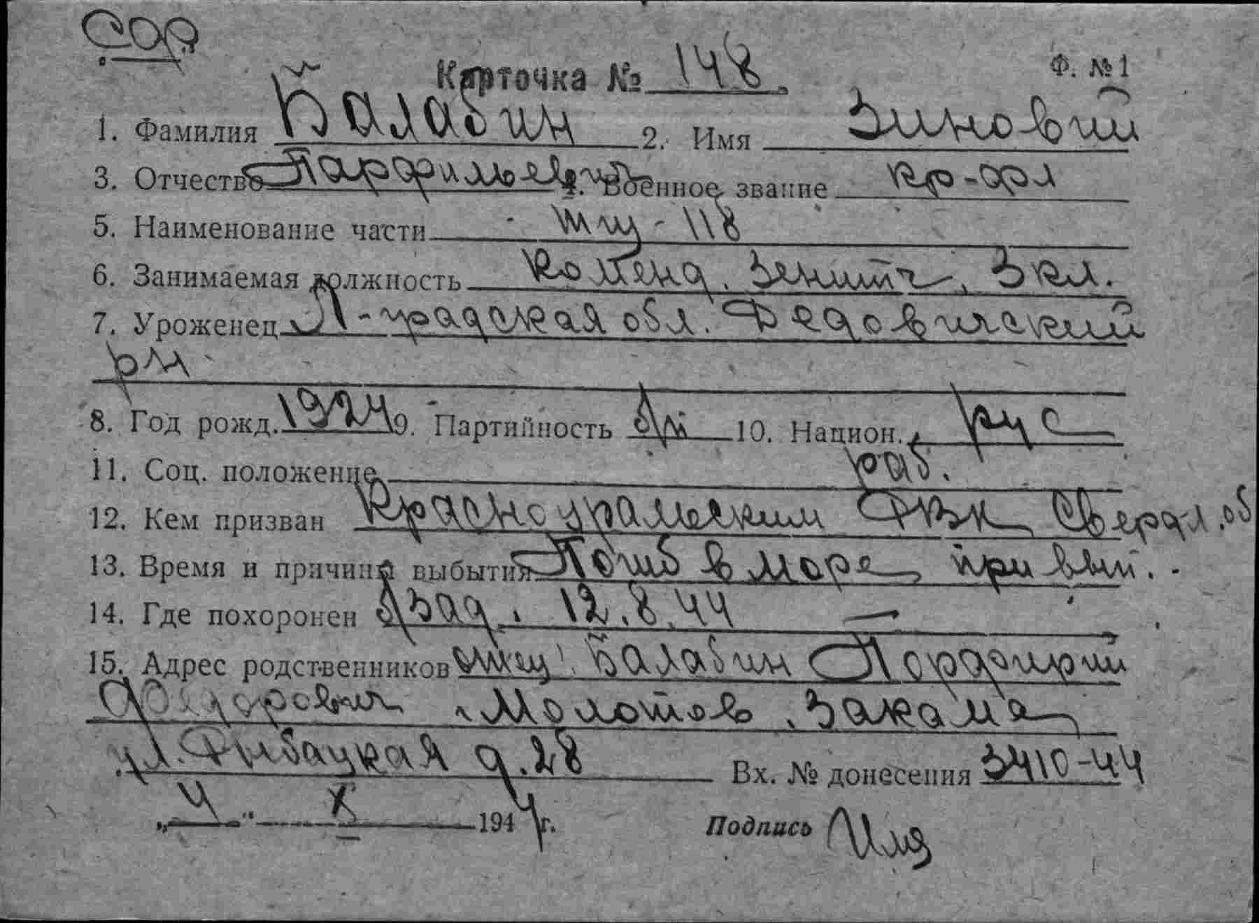 Карточка (ЦВМА, Картотека безвозвратных потерь).