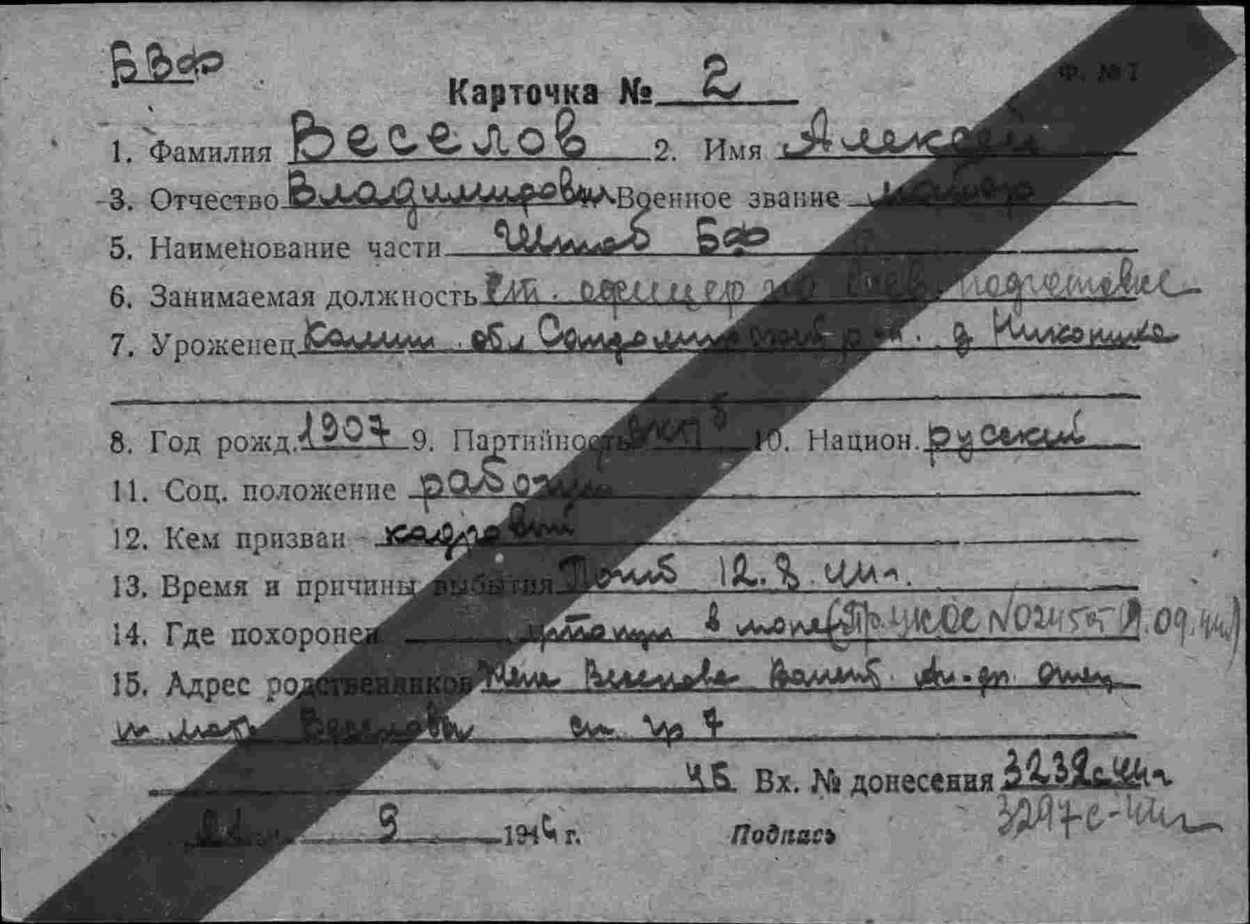 - 1. ЦВМА ф.3303 оп.21874 д.2: КВМБ Именной список ф. №2 безвозвратных потерь № 0282 от 2.09.1944 г.