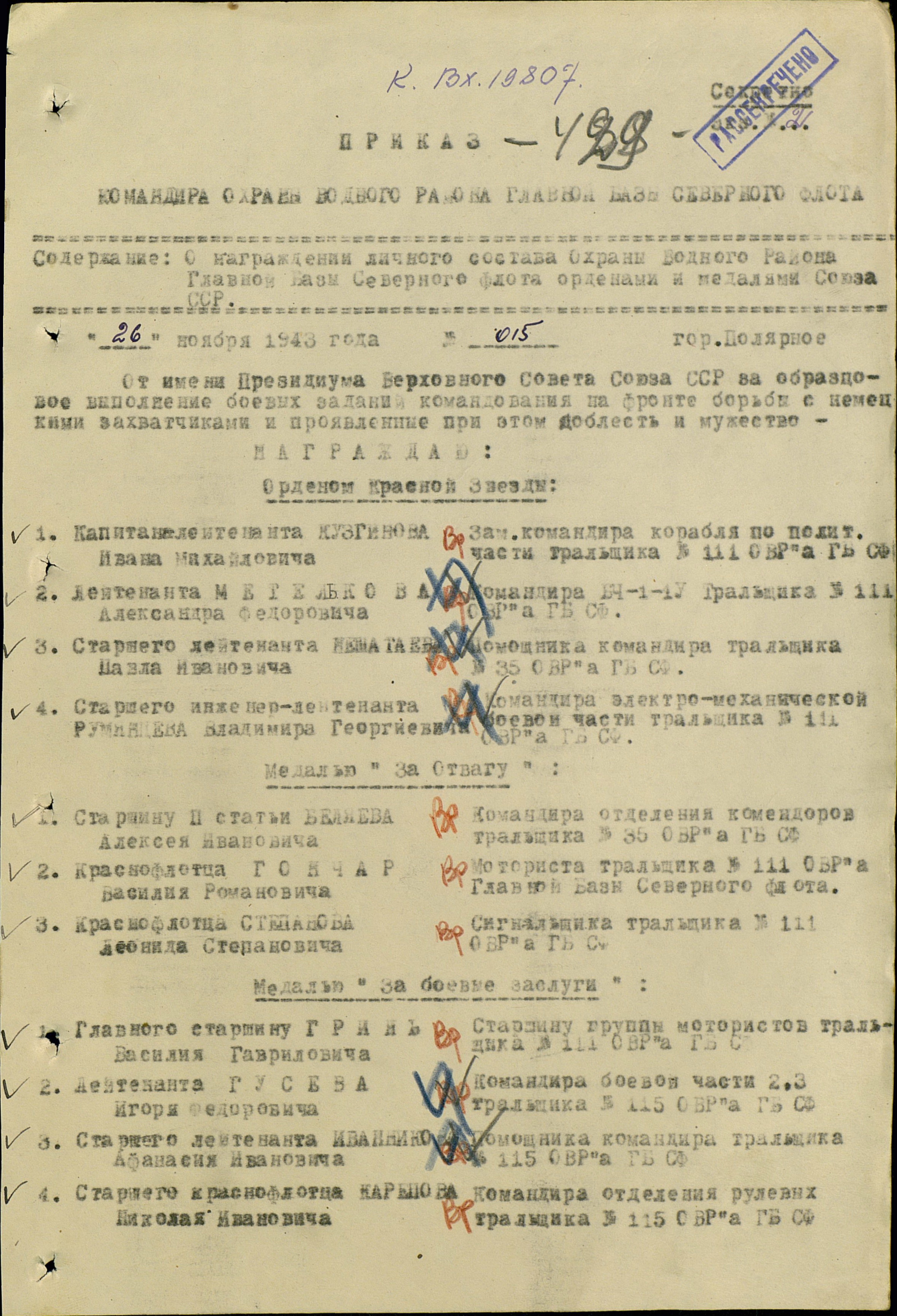 Донесение о безвозвратных потерях 5467 от 27.11.1944 (ЦВМА, Ф. 4038, О. 54, Д. 23).