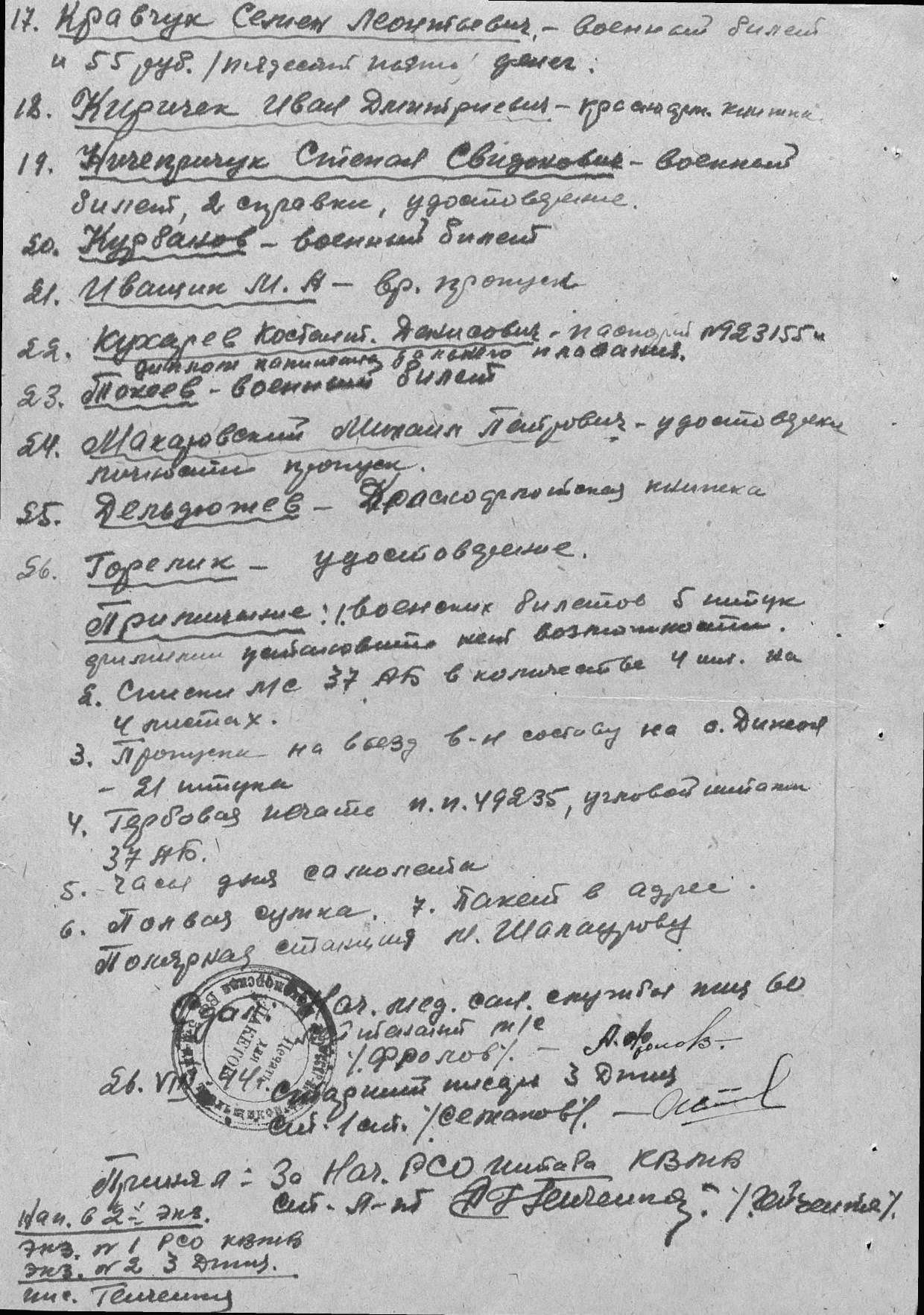 Донесение о безвозвратных потерях исх 0282 от 02.09.1944 (ЦВМА, Ф. 3303, О. 21874, Д. 2).