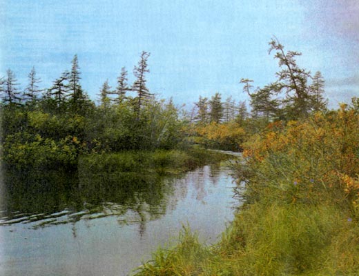 Сопки, поросшие чахлыми лиственницами, едва возвышались над плоской равниной с плешинами озер. Картина завершалась у горизонта темной полоской.