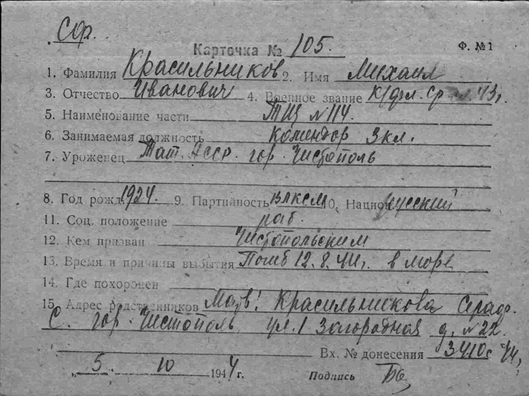 Карточка (ЦВМА, Картотека безвозвратных потерь).