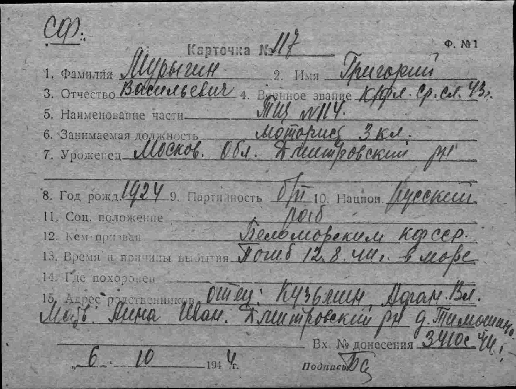 Карточка (ЦВМА, Картотека безвозвратных потерь).