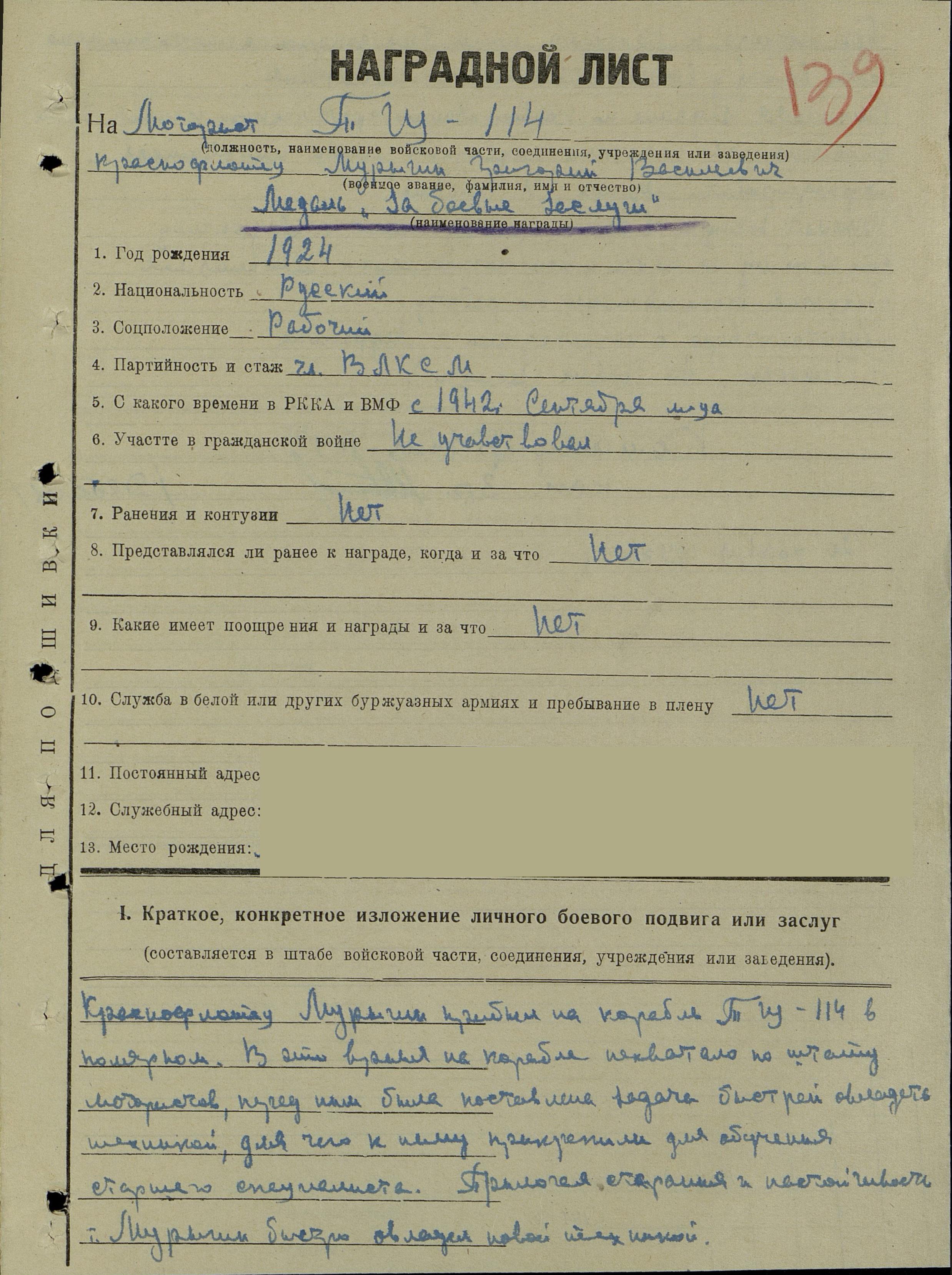 Донесение о безвозвратных потерях 5467 от 27.11.1944 (ЦВМА, Ф. 4038, О. 54, Д. 23).