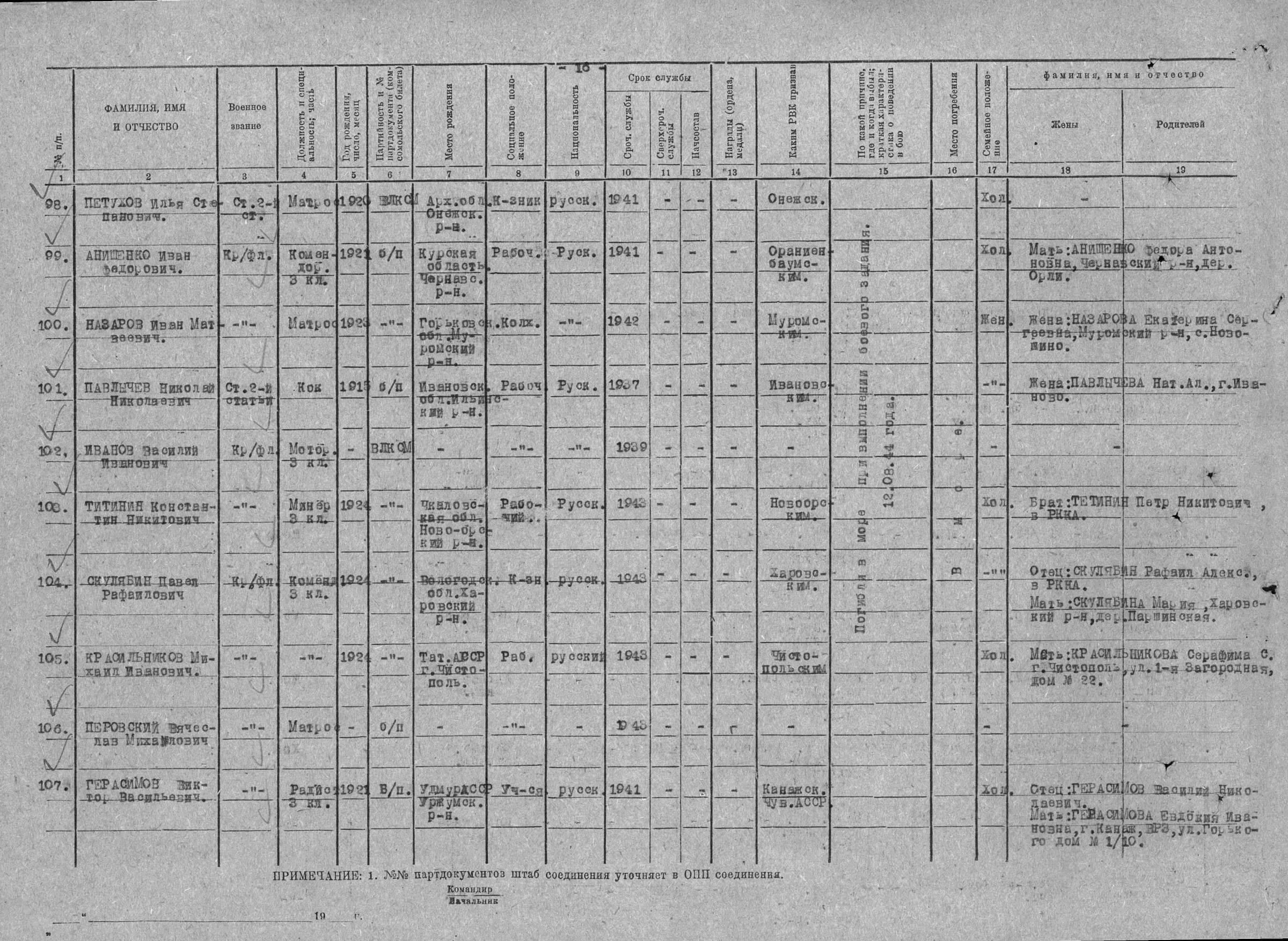 Донесение о безвозвратных потерях 5467 от 27.11.1944 (ЦВМА, Ф. 4038, О. 54, Д. 23).