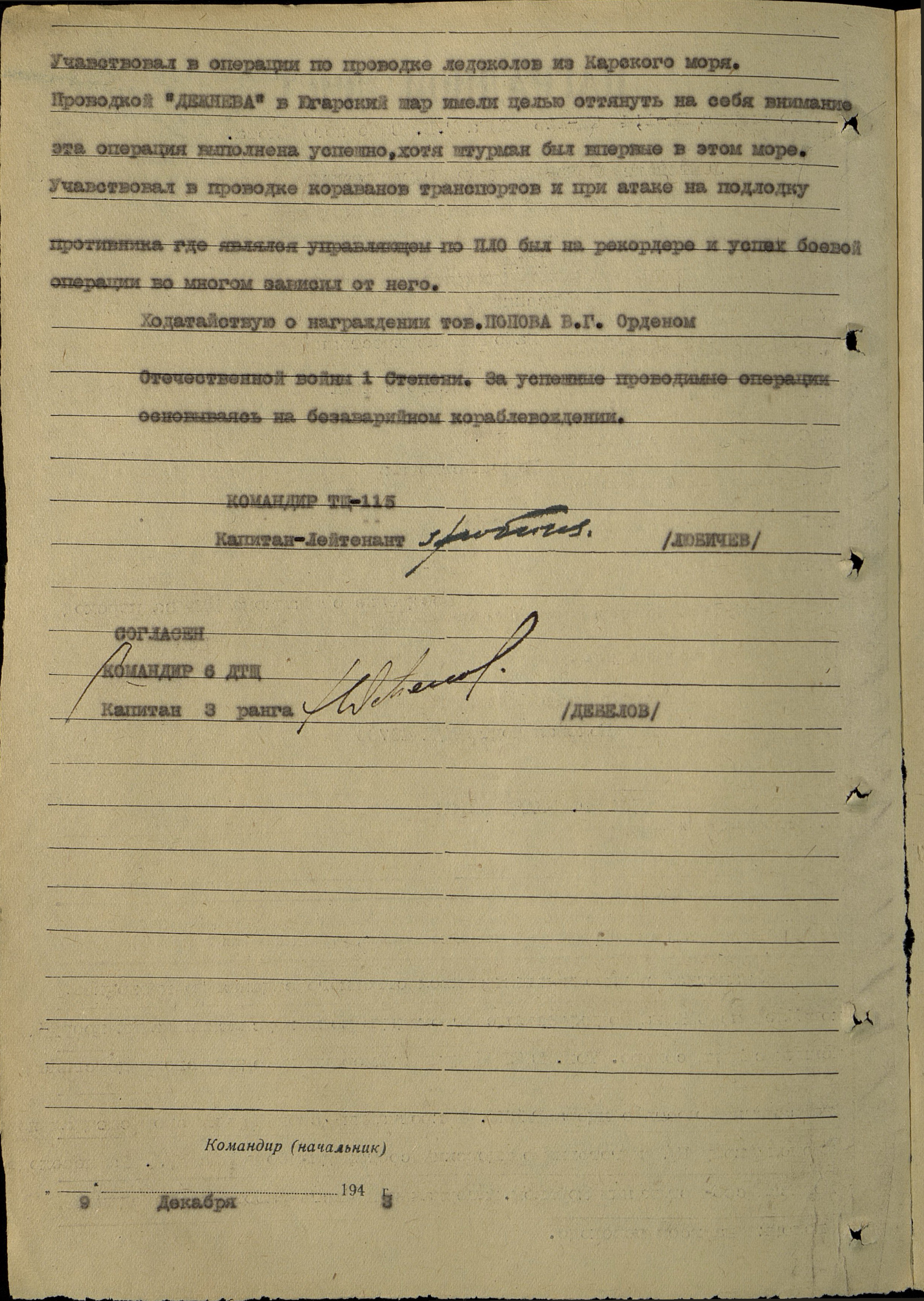 Донесение о безвозвратных потерях 5467 от 27.11.1944 (ЦВМА, Ф. 4038, О. 54, Д. 23).
