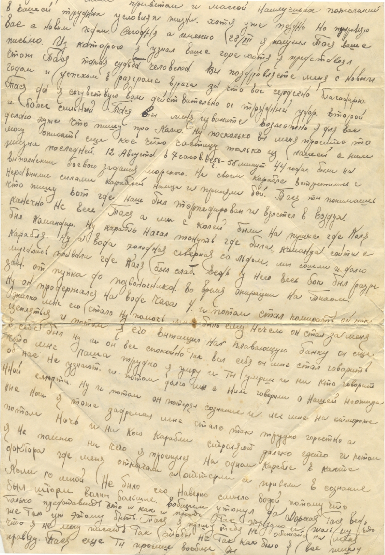 Письмо от друга Колотвина Павла И. на имя сестры Николая Михайловича Таисии Михайловны (мать Глебова Николая Фёдоровича) от 07.12.44. г.