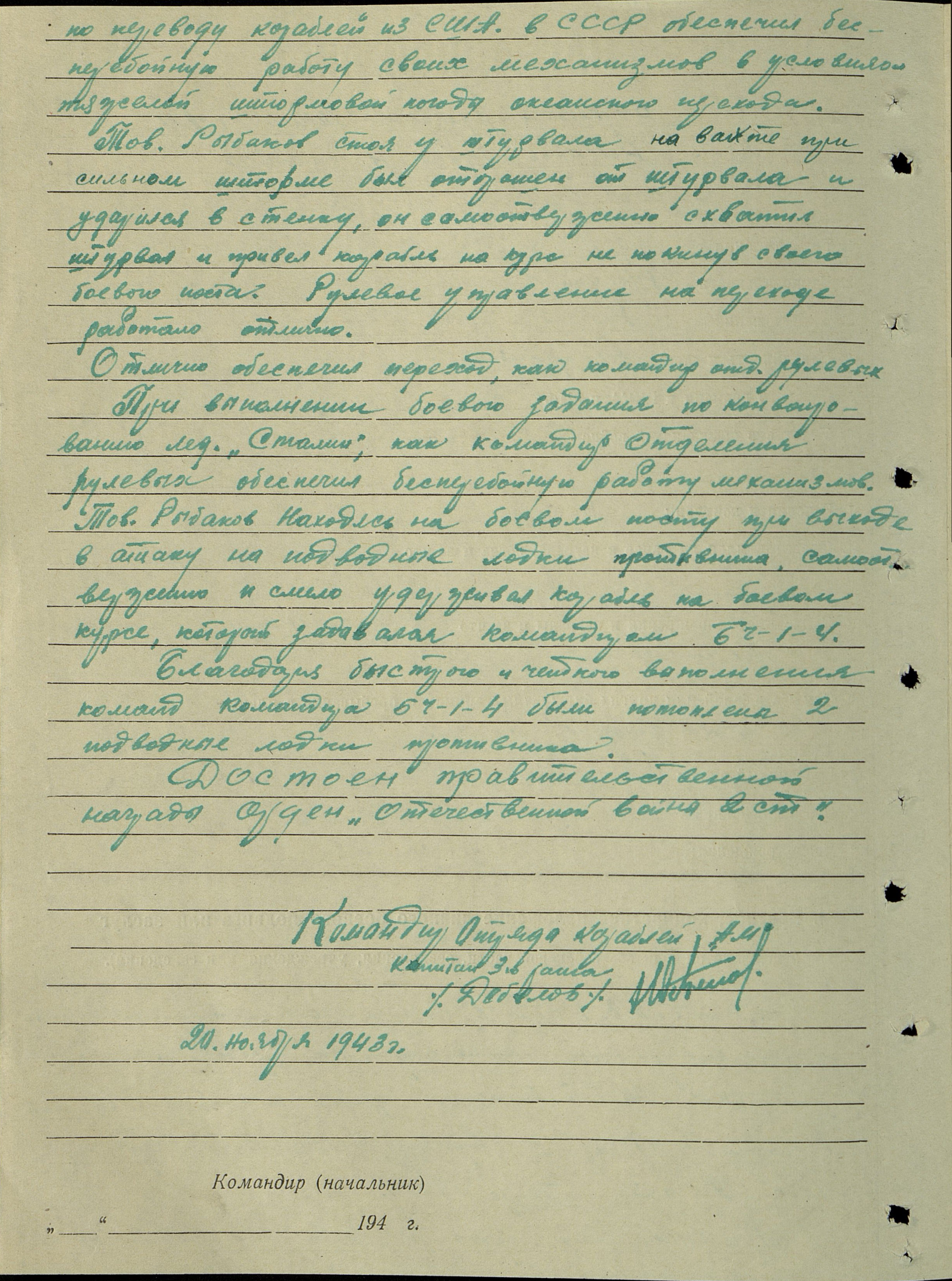 Донесение о безвозвратных потерях 5467 от 27.11.1944 (ЦВМА, Ф. 4038, О. 54, Д. 23).